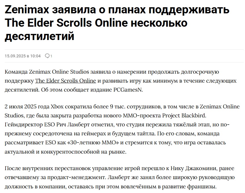 >>2026291 У Зосов был охуительный план, надежный как швейцарские часы. Перевести большую часть разрабов на новую ммо, оставив старую на жизнеобеспечении, потом продавать лутбоксы и дома в старой до выхода новой, в конце перетащить в новую оставшихся игроков из старой, заманив их новыми лутбоксами и домами, а сервера старой прикрыть. Но пришел Фил, отменил новую ммо и разогнал всех, кто над ней работал. В итоге ни новой ммо, ни старой, ни разрабов.