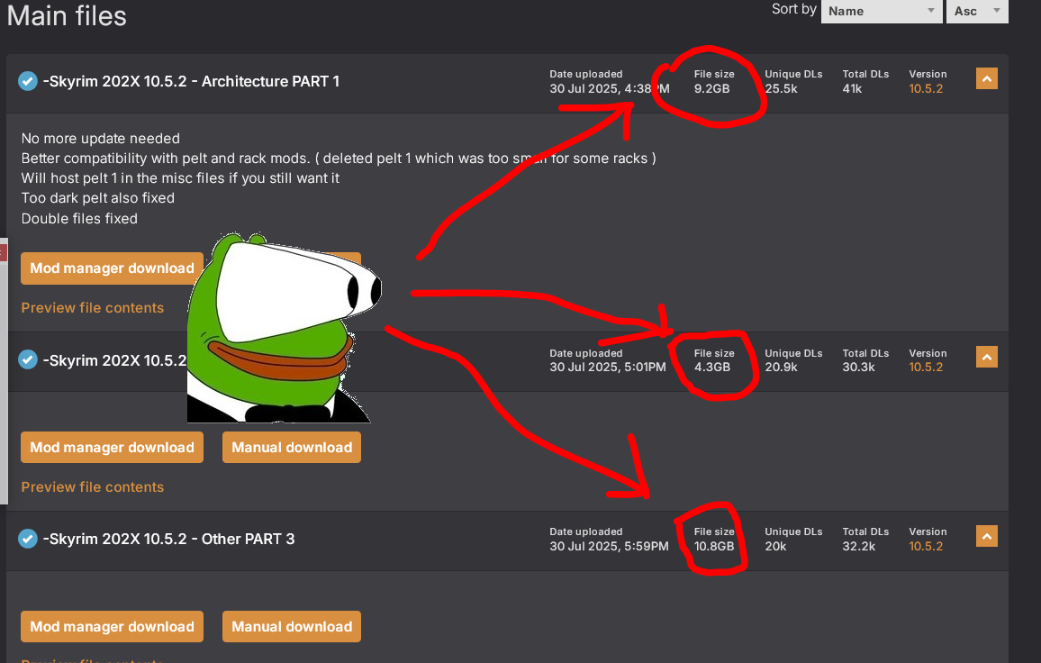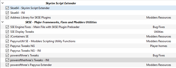 Особенности SSE: ➔ Самые популярные версии игры - 1.5.97, 1.6.640 и 1.6.1170 (Steam). ➔ Некоторые моды, связанные с SKSE, поддерживают не все версии игры. ➔ Skyrim Upscaler (есть в общей папке) и Lossless Scaling полезны как никогда. ➔ Война между проверенными старыми и перспективными новыми решениями нескончаема.