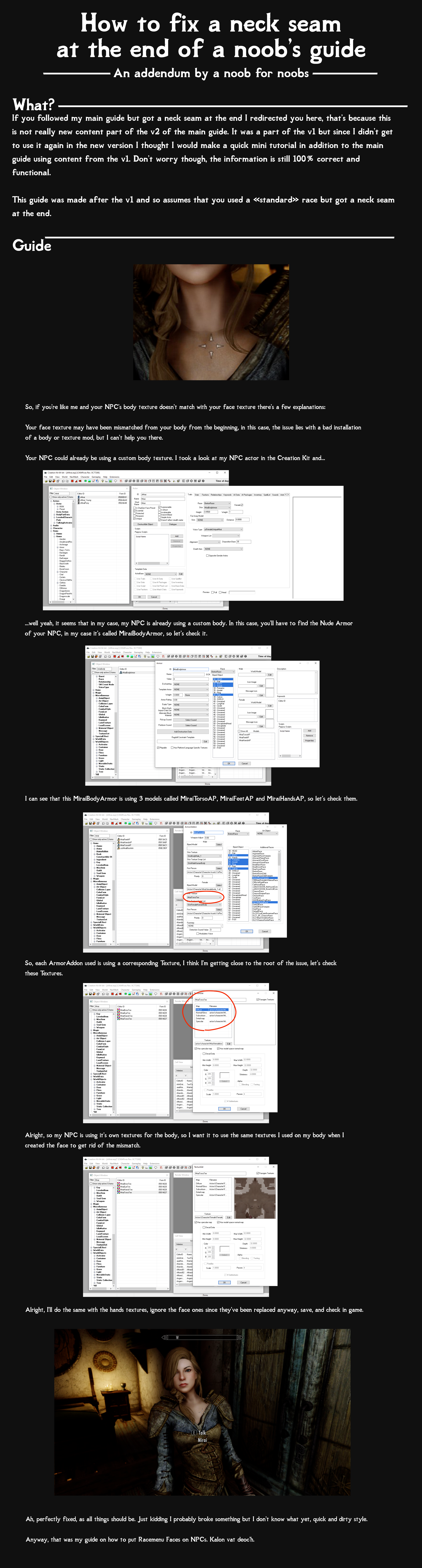 >>2028816 >Мод, короче, не работает сам по себе, не у одного меня такая проблема. В багах, в основном, жалуются что ебала черные (а это фиксится Face Discoloration Fix). Что значит не работает? Волосы на неписях не поменялись или что? Попробуй другие моды на замену ванильных волос и НПС, если совсем уже не выходит. Например, как на моей CS сборке в данный момент.