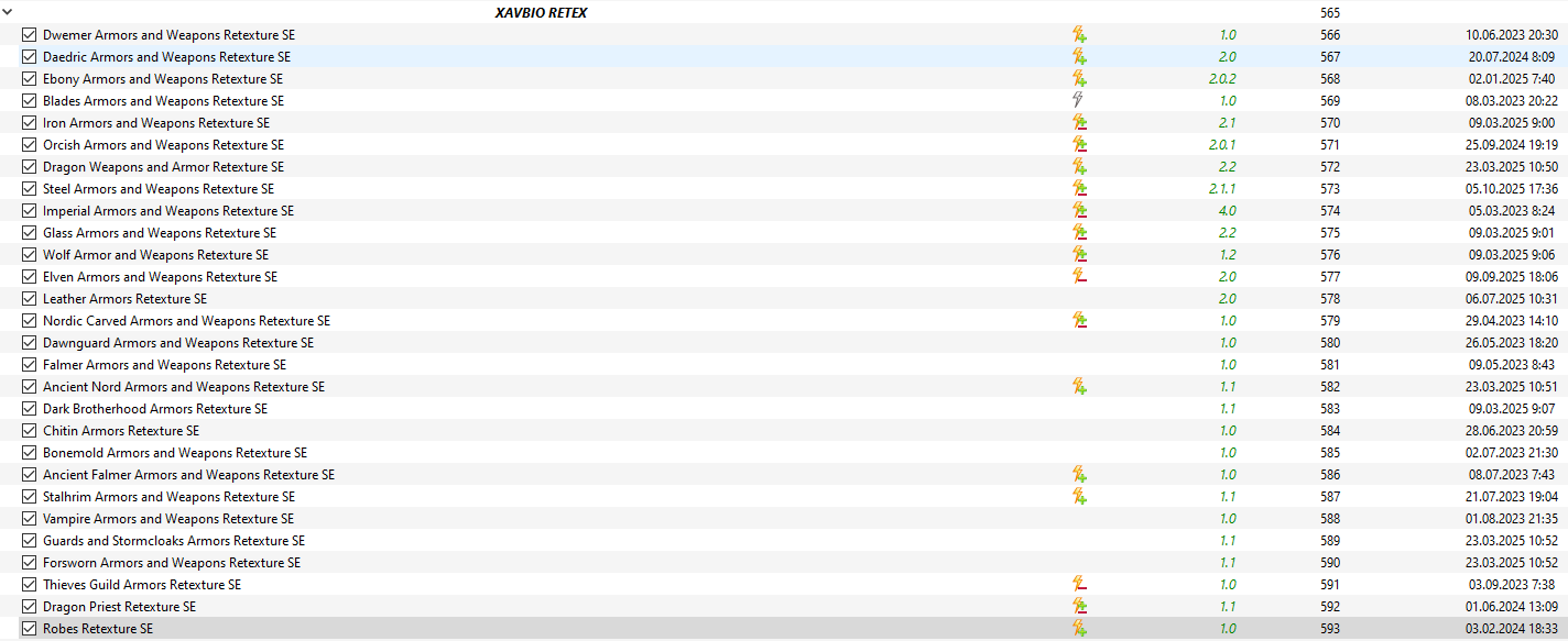 Folkvangr - Grass and Landscape Overhaul Folkvangr - Green Forest Grass Folkvangr - Green Riften Whiterun Forest Borealis WhiterunHoldForest Skyland AIO Blended Roads Cathedral - 3D Grass Library - Meshes Grass Lighting Seasons of Skyrim SKSE Nature of the Wild Lands Nature of the Wild Lands - textures options Lux Lux - Via Lux Orbis Lux (patch hub) EVLaS Obsidian Weathers Rudy ENB Obsidian Weathers Water for ENB