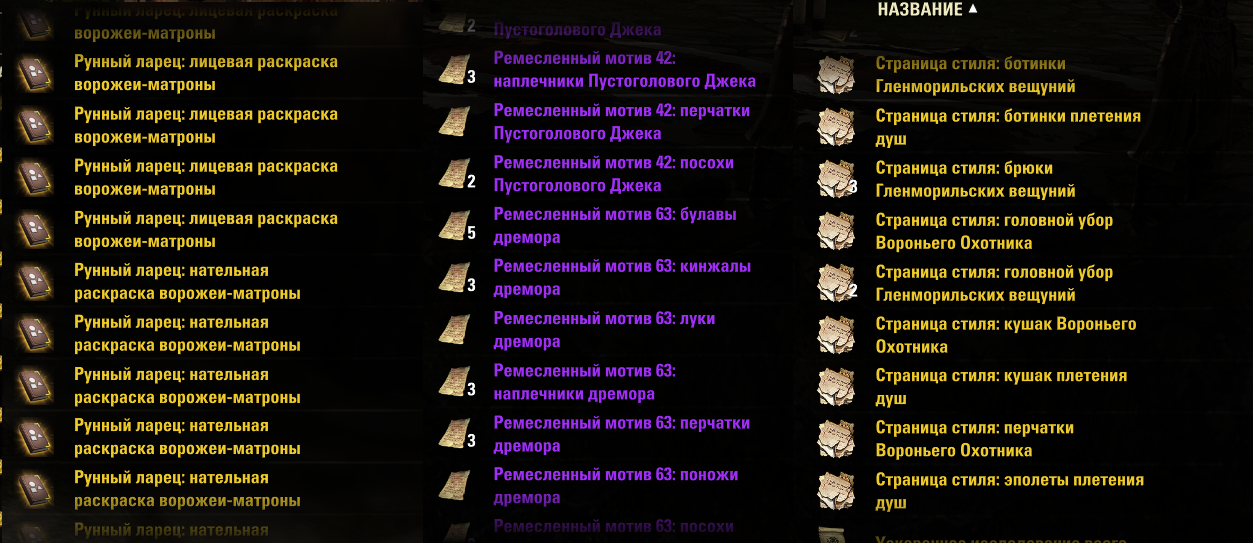 >>2028967 дреморские луки, поножи (с арен) и мечи, нагрудники (с триалов) в межсезонье неплохо продаются за 30-50к штучка, потому что казуалы которые фармят ивент на арены и в триалы не ходят полный мотив и холлоуджека, как сказал анон выше - стоит выучить если есть твинки которые крафтовые дейлики фармят