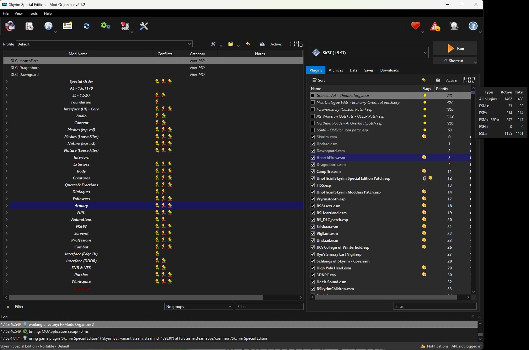 Ну качество жизни зашкаливающее, на страницах модов написано с чем работает, с чем конфликтует, на практике ничего ни с чем не работает, все со всем конфликтует