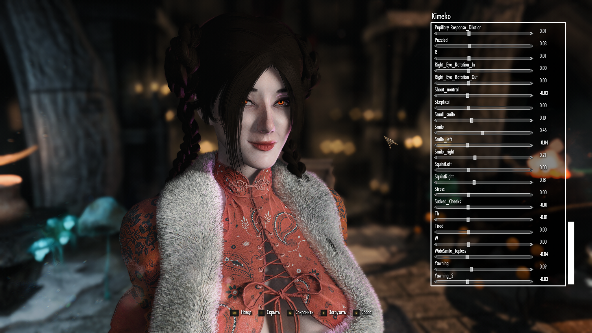 Научите настраивать выражение ебала ГГ на скриншотах, пожалуйста. Какие слайдеры в SAM или рейсменю надо крутить, чтоб натуральную улыбку увидеть? Всякие mood happy и dialogue happy просто сужают глаза и делают улыбку с плоскими губами и закрытым ртом, что выглядит ебано.