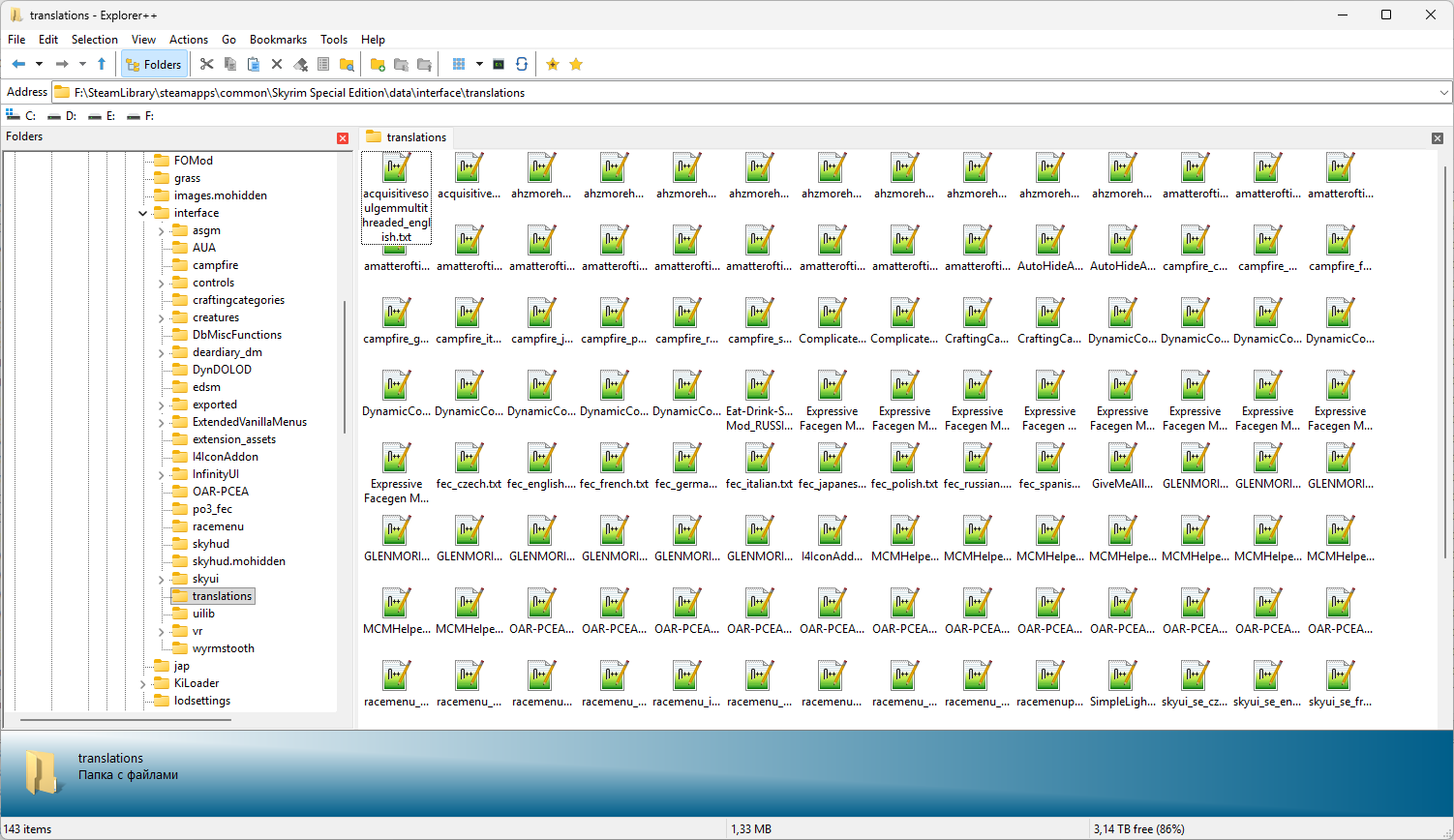 Игрался со шрифтами и снова проиграл. В прошлый раз тоже ставил этот шрифт https://www.nexusmods.com/skyrimspecialedition/mods/386, но проблемы как-то решил - тогда файл fonconfig перезаписывался, сейчас ничем не перезаписывается, но в главном меню какая-то точка, с этим я могу смириться, а вот книга из мода имеет квадраты вместо букав и я проверил что и мод сохранен в utf-8 и русский текст там есть, но шрифт там Daedric, который должен содержаться в стандартном наборе шрифтов скурима, ведь да? Помоги модач, куда смотреть или что искать чтобы исправить проблему со шрифтами?