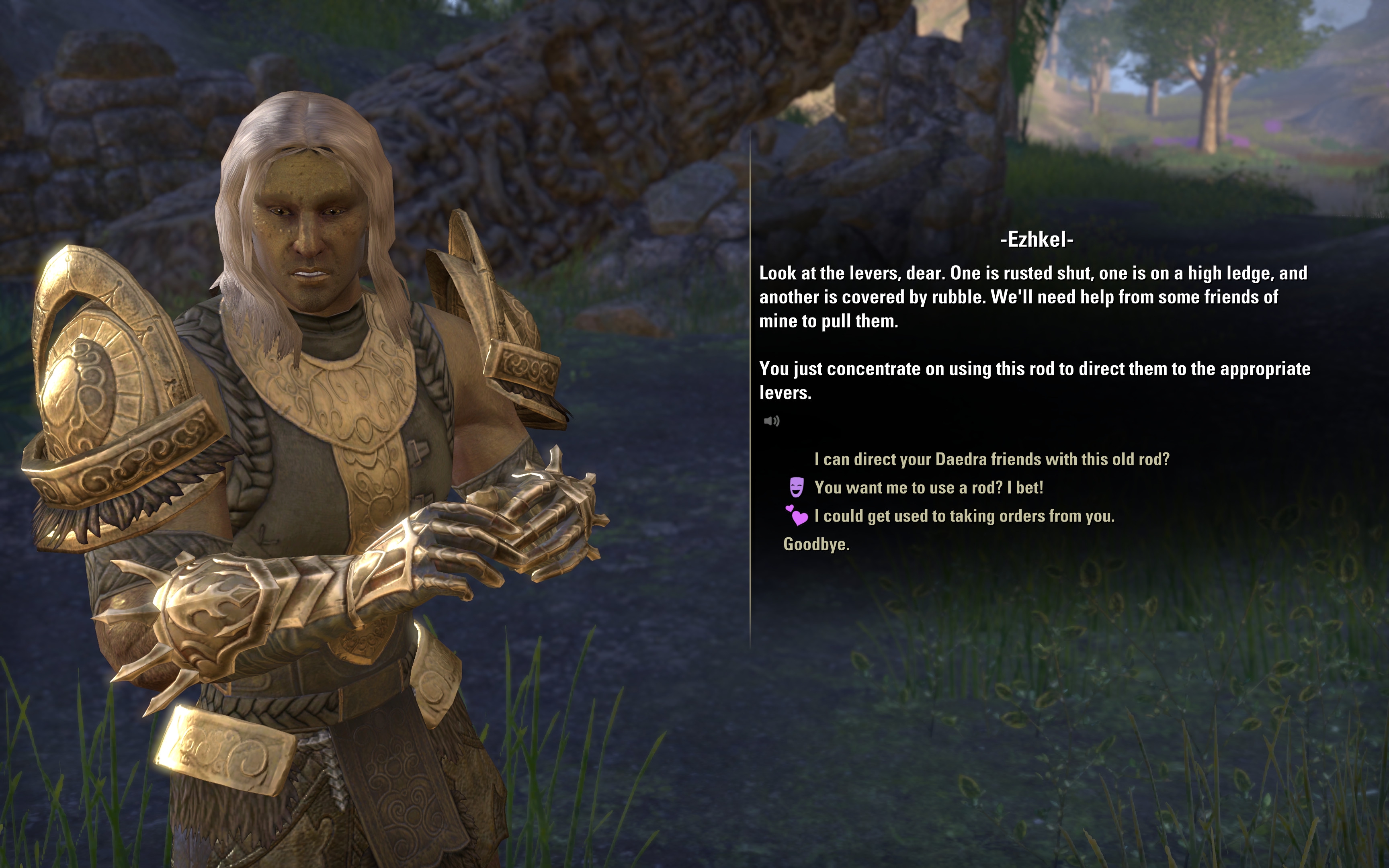 подскажите, пожалуйста, в Солитьюде есть нпс-мужик норд с баками и посохом восстановления, ходит, говорит что погода и кислород топ около драконьего моста, ходит, курит трубку. У него какая-то личность уникальная? как курить трубку в ESO?