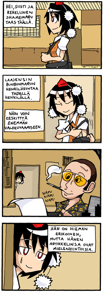 >>13393 Эт перевод: В общем, эта тян какая-то редактор, она расширила редакцию Bunbunmaru на одного человека. Он немного странный, но у него интересные статьи.