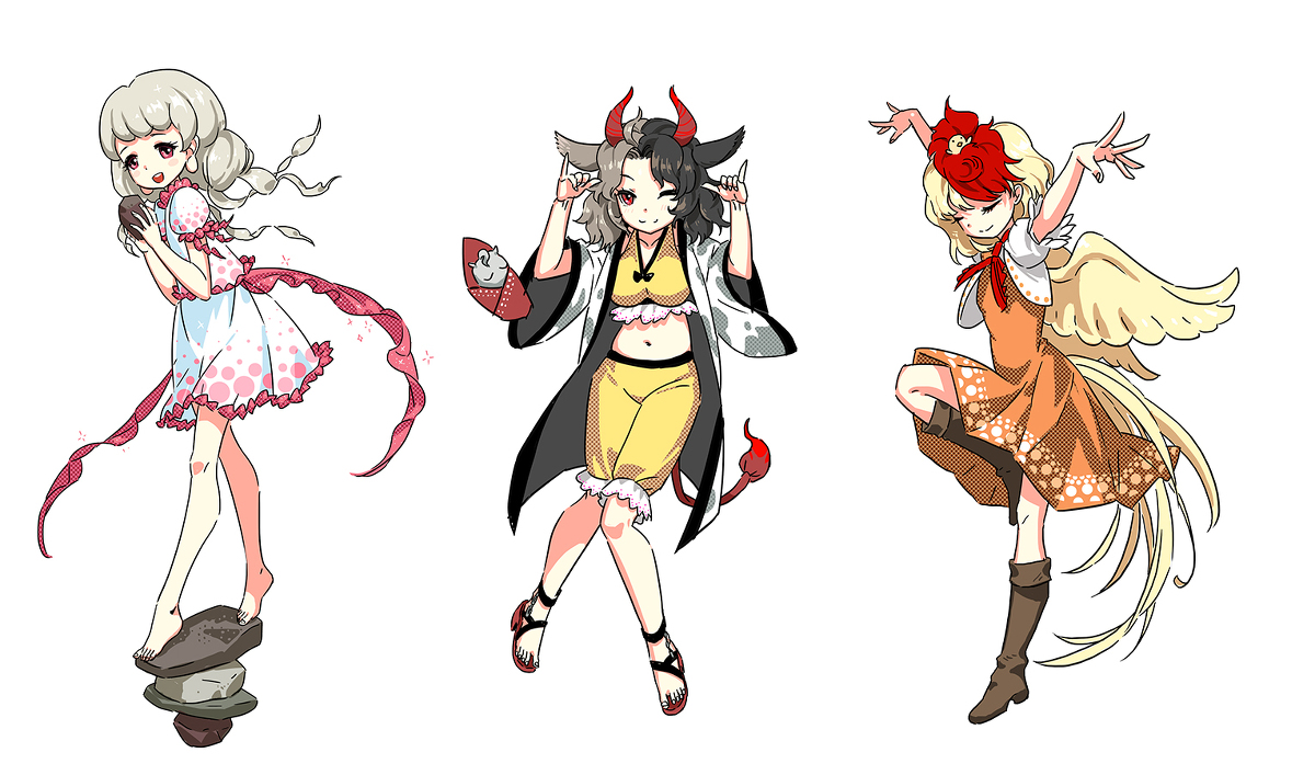 >>107985 (OP) Короче, новые Тохо-девочки это: 1. Дух мертворождённого ребёнка, который очень хорошо умеет собирать камни, и поэтому является чем-то вроде лидера других духов мертворождённых детей в Детском Лимбе. 2. Уши-Они, которая раньше топила людей в реке Сандзу, отдавая им в руки каменную статую младенца, а затем увеличивая её вес; но потом нападать на людей в Генсокё запретили, и она стала ловить в реке Сандзу обитающих там гигантских доисторических рыб и продавать. 3. Богиня диких куриц, которая работает сторожем в контрольно-пропускных пунктах Ада и сортирует там людей и Они, направляя их в подходящие места жительства. Работает она в Хигане, а живёт на Ёкайской Горе.