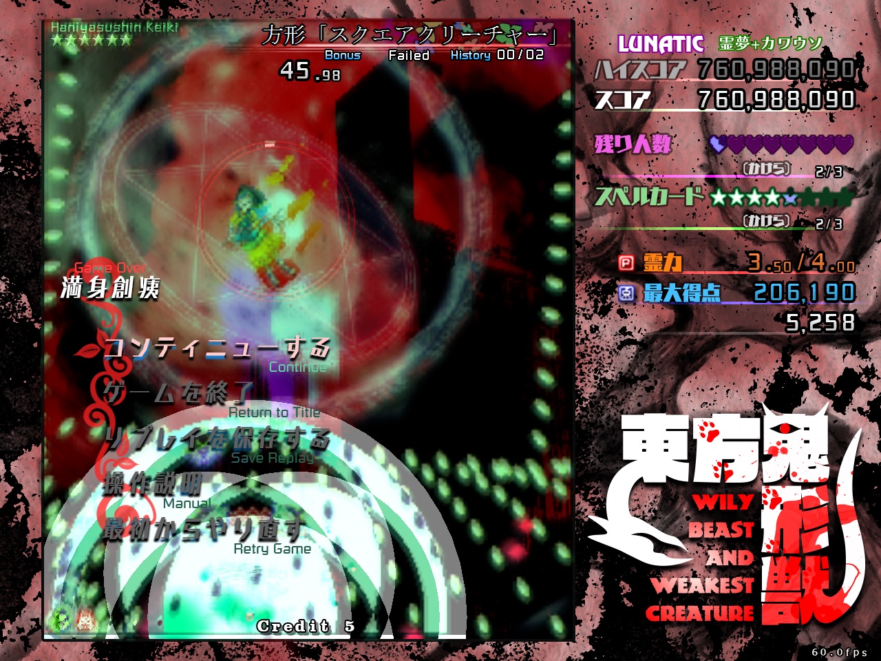 >>113842 >Почти 1цц за Рейму-Волка и полноценный 1цц за Марисочку-Выдру. Грац. Я сам часа 4 назад взял 1cc за Рейму-Волка. >Проиграл с озверевших девок перед ластспеллом. Это наверное и есть та самая агрессивность. Если ты про красные глаза и оружие, то это наш союзник перехватывает контроль над телом чтобы что-то сказать. Конкретно перед последними двумя спеллами в игре дух хвалит нас и сообщает что прибыло подкрепление.