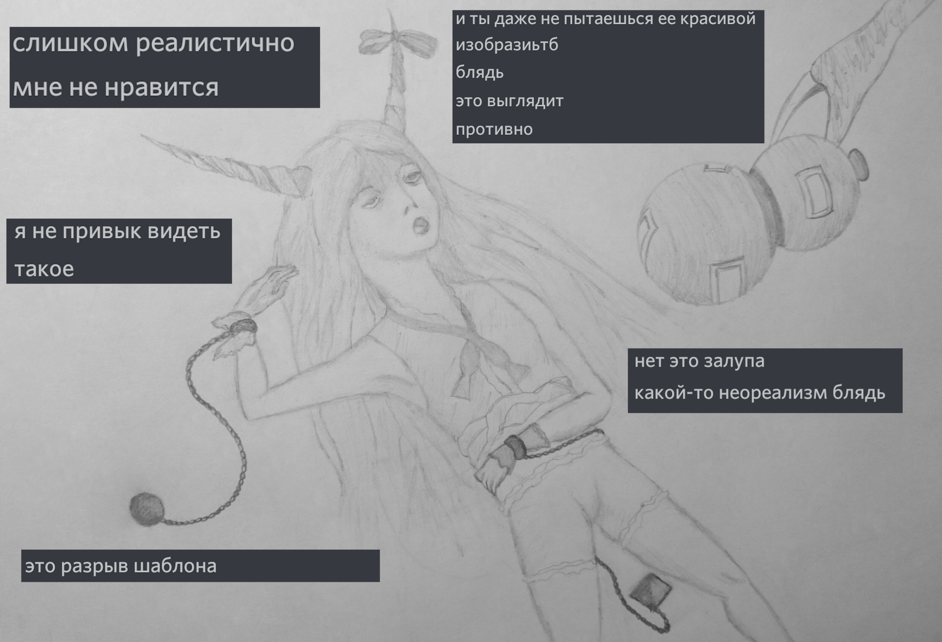 >>123117 1) Нарисуй уже что-нибудь как ты фумо плюхи рисовал. Симпатично, цивильно, легко и никто не залупнётся на стиль. 2) Твой стиль - говно. 3) Научись уже привлекательно красить, твой всратый покрас портит даже подающий надежды лайн. Покрас уровня мерзейшего додзя-рисоваки, который какого-то хуя в топе популярности. Только ты не в топе. 4) Комикс не думал намалевать? Даже Реймуёб нарисовал додзю с пидорахенским юмором и делает продолжения, а ты 3 год как целка среди маэстро.