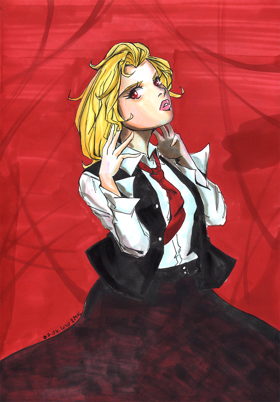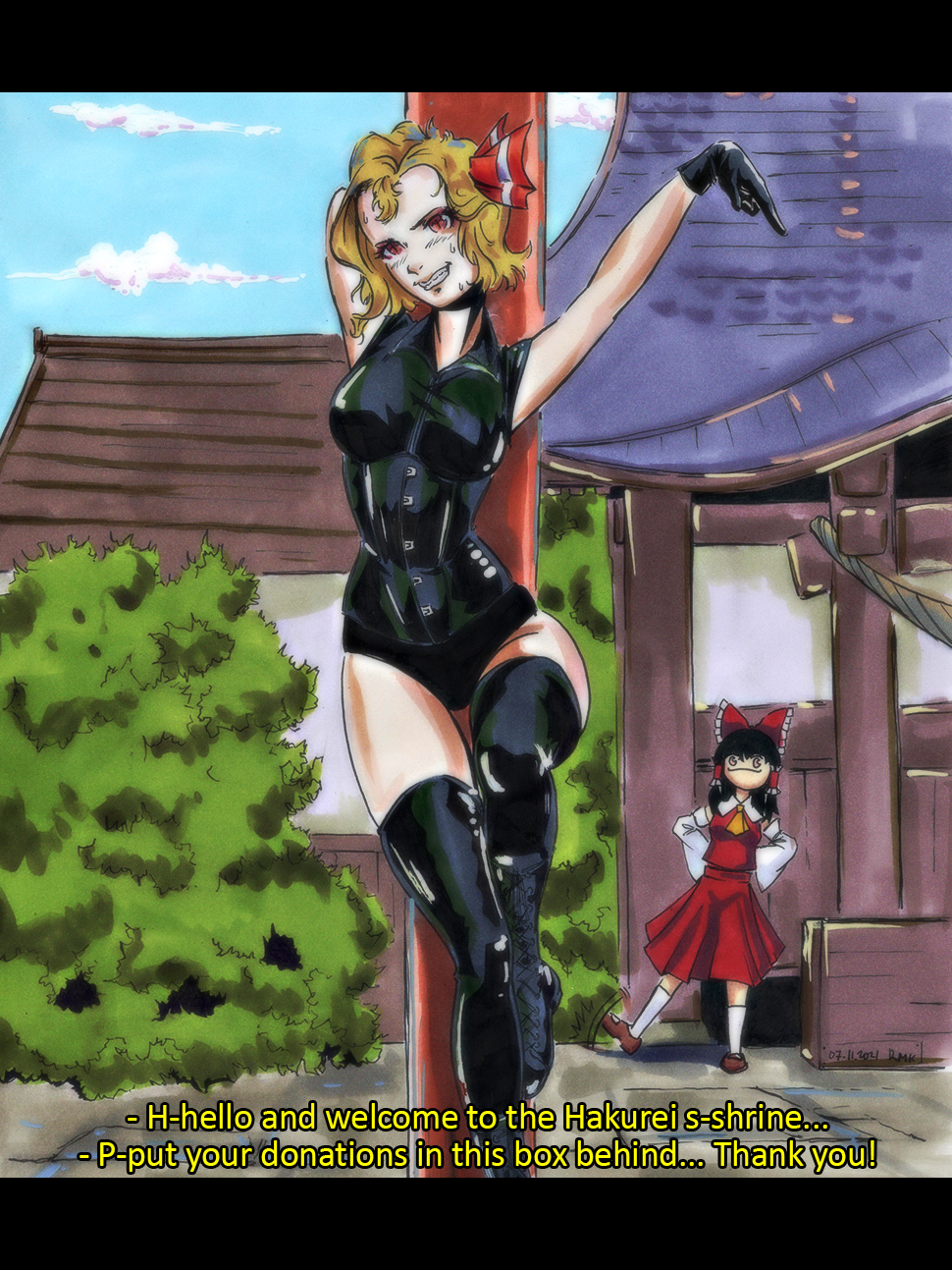 >>126479 Навёрстываешь упущенной, старик? О, да ещё и сюда сначала запостил. Экслюзив! Чисто делюсь фантазией: Юкари в "приличной" кожанной одёжке сидит на офисном кресле, сбоку у её ног на поводке сидит почти голая Рейму. Юкари обращается к зрителю, говоря, мол:"Я бы пустила вас в мир грёз, но эта сука хочет денег~"