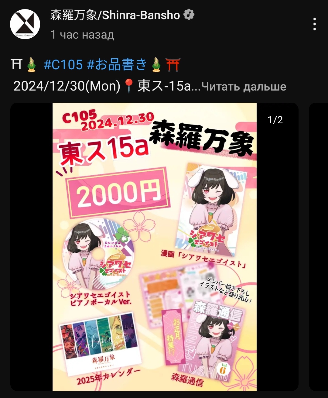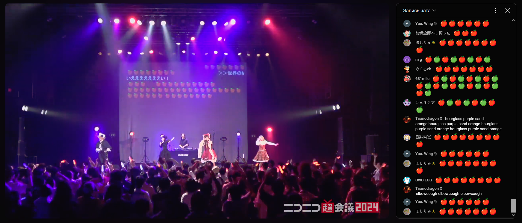 23 и 24 апреля прошёл концерт "Cho Touhou live stage 2024". Выступали такие известные кружки как Alstroemeria Records, Shinra Bansho, Digital Wing, Tumeneco, Tokyo Active NEETs, A-One records, Tanabata и Butoatome. Пока сам полностью не посмотрел, но Алстроемерия исполнила коронную Bad Apple подорвав чат на спам яблоками и подняв реально крутую атмосферу, которую едва можно почувствовать смотря трансляцию. 1: https://www.youtube.com/live/N2ExzPfxea0?si=TNQFMZslBcP9d-X4 2: https://www.youtube.com/live/-YolRx1DLDM?si=ztLLLq5cn9X3Kk6T