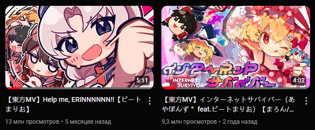 Уважаемые, вы не помните клип, который лет 10-11 назад был на ютубе и вк фанатский. Сейчас попробую описать примерно: трек был японский речитатив гнусавый какой-то, из сеттинга помню как Рейму на кортанах спалили с сигаретами и анимация не ммд и не чибики, а просто как слайдшоу вроде было... Он даже был у меня где-то в избранных на ютабе, но он потерт отовсюду. Молю, если вы что-то знаете сообщите...