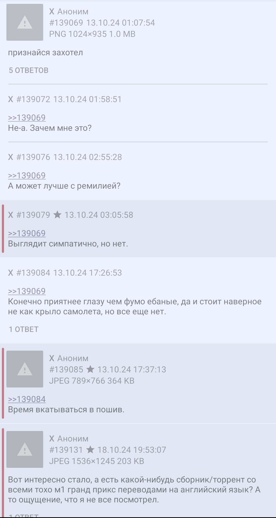 >>139976 > посидите за компом, поедите и спать пойдёте Скорее всего, так и выйдет. Чего тут праздновать...? Я не чувствую новогоднего настроения. >>139985 Зачем? >>139986 Прямо как суйка, лишь бы накатить по какому нибудь поводу. >>139987 И там большие, и тут большие. >>139989 Зеленого слоника пересмотрели? Наверное они уже там заодно гвоздем расчертили доску, а из грязи шашки сделали. >>139995 Зато все чинно благородно, а не как в условном /b/ или /rf/. >>139998 Логично. У нас и тохомузыку слушать некому, и в даммаку играть некому, потому здесь и нет почти никого. Ну и ладно, так даже уютнее. >>140017 А если накатить за ремилию? >>140018 Остается только надеяться...