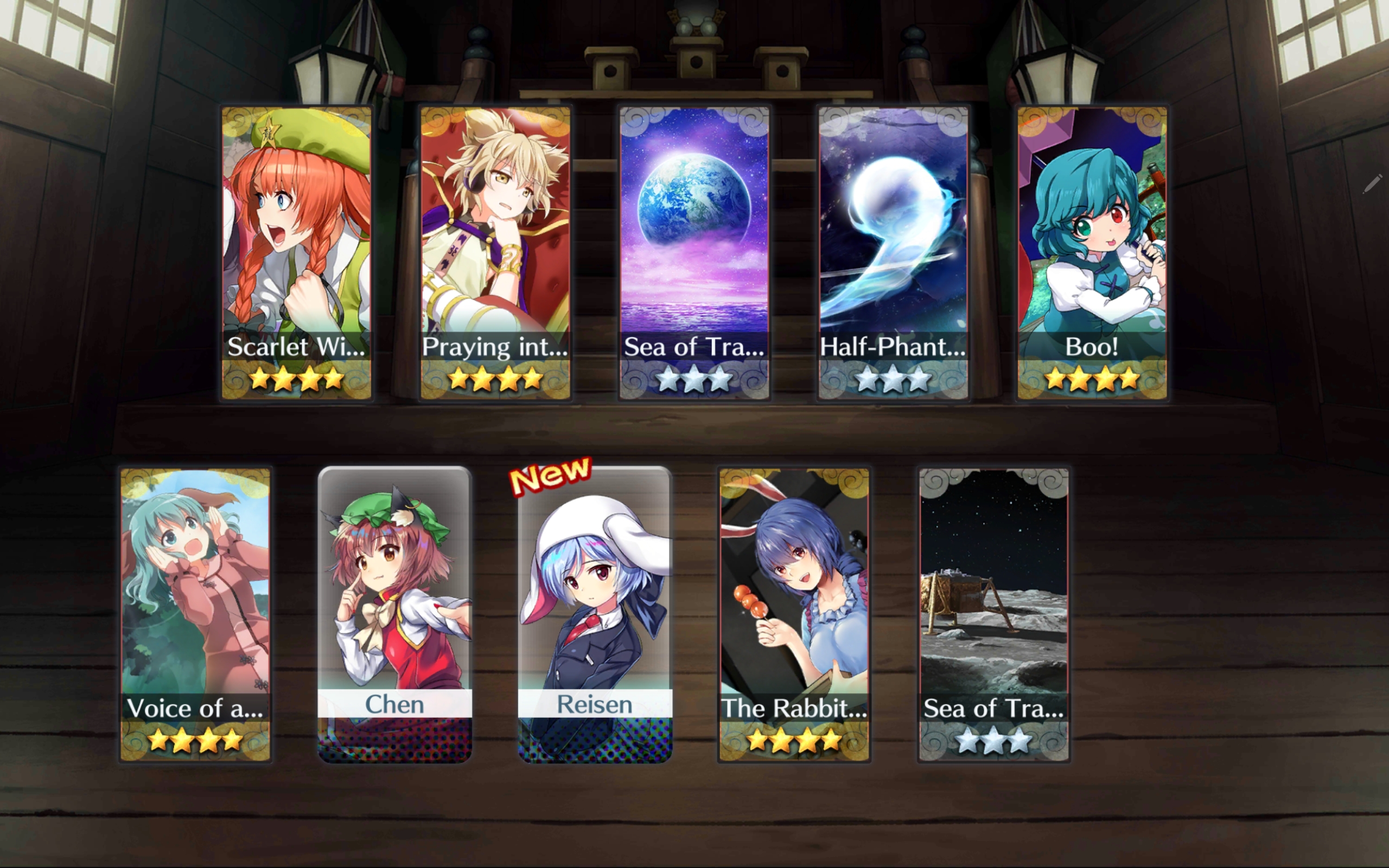 Вообще странное решение делать оригинального персонажа с полтора строчками текста таким дорогим. Фанаты марисы наверное лимитбрейкают обычную марису а для закрывания контента неделю назад выкатили суйку. Ну, всяко лучше чем если бы уже сейчас запускали лунных принцес, как боялись.