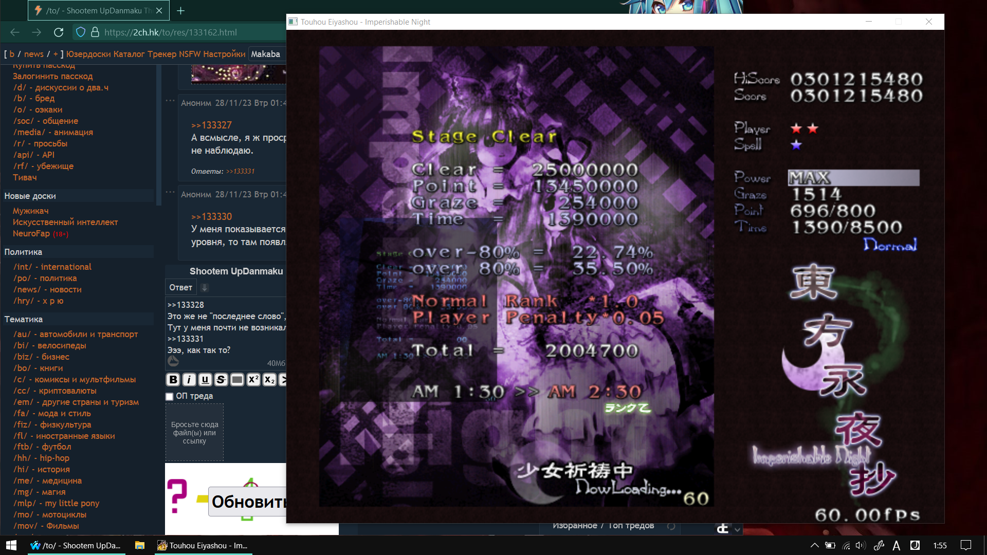 Итак. Первый пикрил и реплей. Моя попытка играть за марису и алису. Что то я разучился за них играть, раз на рейму сливаюсь. Но это было ожидаемо. А вот второй пикрил и реплей куда интереснее. У меня впервые в жизни получилось пройти 8 тоху без продолжений! А я и сам не заметил этого. Я считаю это стоило того, что я в итоге до 5 утра просидел в тохе. Шикарно. https://dropmefiles.com/npJgm