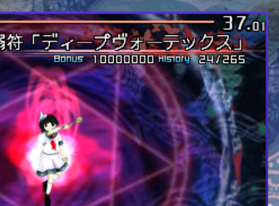 Нихрена себе, сейчас у меня получилось дойти ВНЕЗАПНО до кагуи... Я забыл про то, что не брал continue и за это меня выкидывает на финал Б, вместо привычного для меня финала А. Правда да, на финале уже никакие continue брать нельзя, а большинство жизней я просрал на марисе и рейсен. А в чем секрет такой небывалой для меня продуктивности? Во первых, я играл с дуалшоком 3, и даже без провода (!!!), во вторых, я перед боссами и в конце уровней нюхал карандаш звездочку. Но я наверное врядли пойду в части посвежее, потому что меня там просто раскатают. А 4 и 5 уровни восьмерки мне нравятся больше, чем в той же семерке и уж тем более шестерке. Плюс я восьмерку лучше всего помню по узорам атак. Видео не записывал, потому что не ожидал такой продуктивности, поэтому только реплей. https://dropmefiles.com/xwOXV