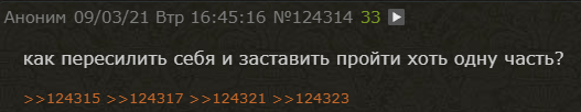 >>134307 > Чтобы пройти, если тебе это вообще надо. Всем остальным людям это приносит толк. Мне пока лишь разочарование приносит. > Я НИ ОДНУ тоху не прошёл без методичного задрачивания. В 19 лучше всего было, там даже 1сс получить проще всего, не нужно над собой издеваться. Да, с пером там поиграть не выйдет, потому что драйвер не обновили, но с джойстиком нормально. > Я вообще пока все нормалы с 6 до 18 не прошёл у меня не было такого что я сижу рандомно тыкаюсь в разные игры, я тратил время на дроч актуальной игры пока мог и прерывался на другие только когда совсем уж заёбывало. Я уже так летом или когда пытался пройти 10 часть и все время сливался в одних и тех же местах, даже отложил перо и переключился на клаву и все равно нихрена. Даже сохраниться нельзя, чтоб потом продолжить с того же места. Да, в 15 можно так, но эта часть сплошное издевательство над игроком, также как и 11 и 12. > Тебе надо было делать как я, пока тоху #N не пройдёшь, в N+ не играть. Так неинтересно же. > Мне здесь ещё говорили что я так 11/15 никогда не пройду и застряну намертво. А я не только в 11 и 15 застрял, но и в остальных тоже. > А оно вон как получилось. Я конечно застрял на 1, потом на 2 года, но в итоге прошёл. Мда уж, вот настолько все плохо... > А ты привык разжижать себе мозг этими перескакиваниями и настоящие проблемы возникли как раз у тебя, а не у меня. Я уже говорил тебе о том, что такое безумие? Безумие - это точное повторение одного и того же действия, раз за разом в надежде на изменение. Это. Есть. Безумие! > И они не решатся пока не научишься концентрироваться на одной игре неделями, прерываясь только когда совсем невмоготу будет или после того как за день уже сделал одну приличную попытку пройти актуальную игру. Ну да, у меня проблемы с концентрацией, но я мало что могу с этим сделать.