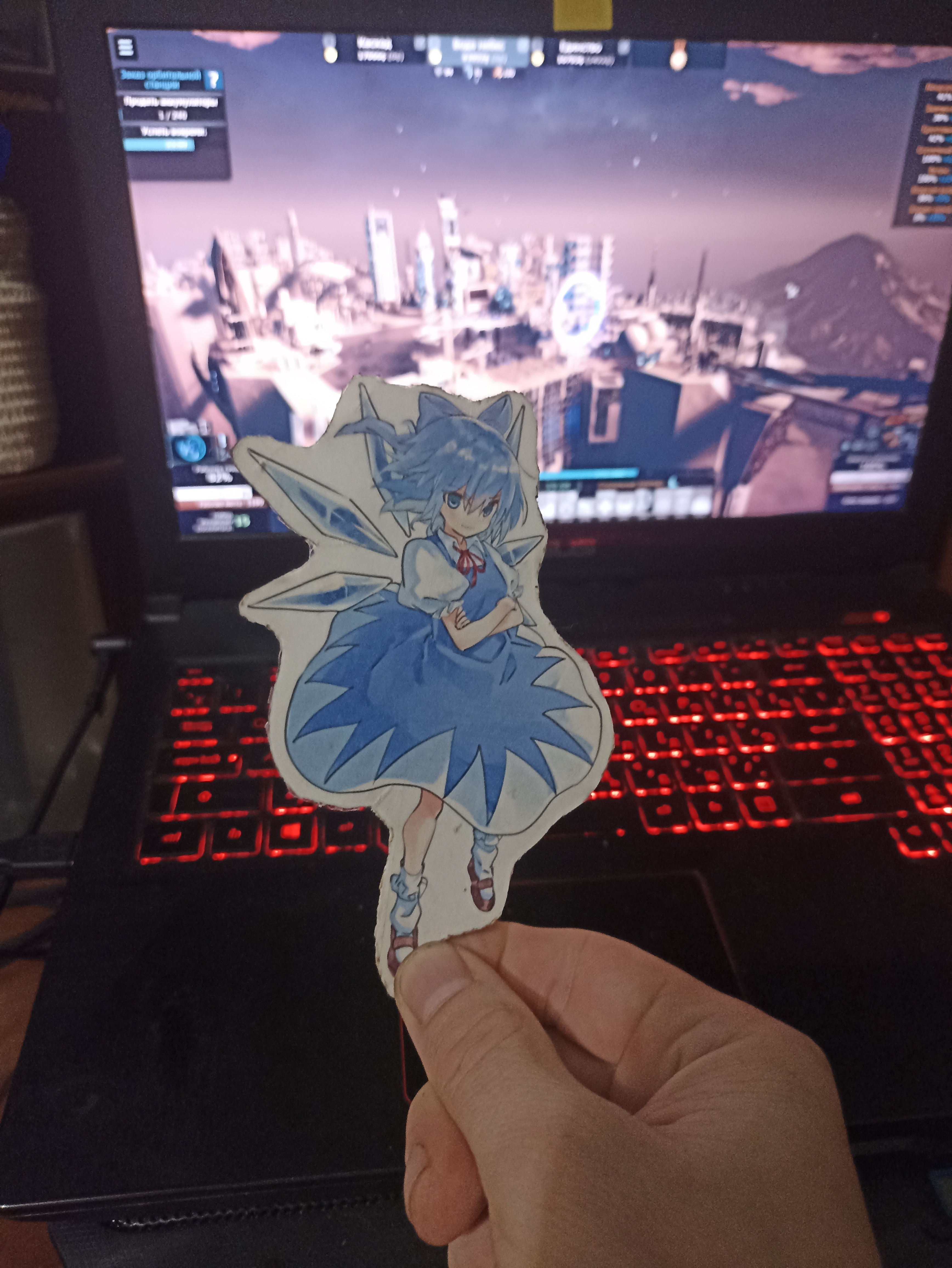 Лет 6 назад я познакомил свою племянницу с тохой. показал ей игры, сперва на смартфоне, потом уже на пеке. Было весело, все дела, но потом все забылось. И вот, был я летом у неё в гостях, она показала мне свои поделки из бумаги. Ну типа вырезает персонажей из маняме и склеивает их, ака объемные фигурки. Так вот, специально для меня она вырезала Сырну не объемную, но в несколько слоев, с ножкой для поддержки и даже qrкод с ссылкой на видео в ютубе с обратной стороны Мило и душевно. Кстати, видел у нее заготовку на Фланю. Мог бы заказать, но как то нафиг надо.