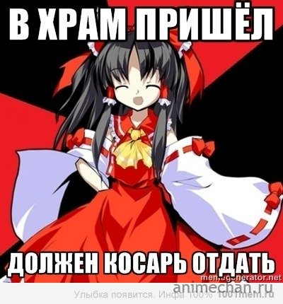 Рейму на самом деле - сумасшедшая девочка-сирота, которая живет в заброшенном храме, и все прочие персонажи - это куклы, которых она сделала и с которыми разговаривает. Дискасс.