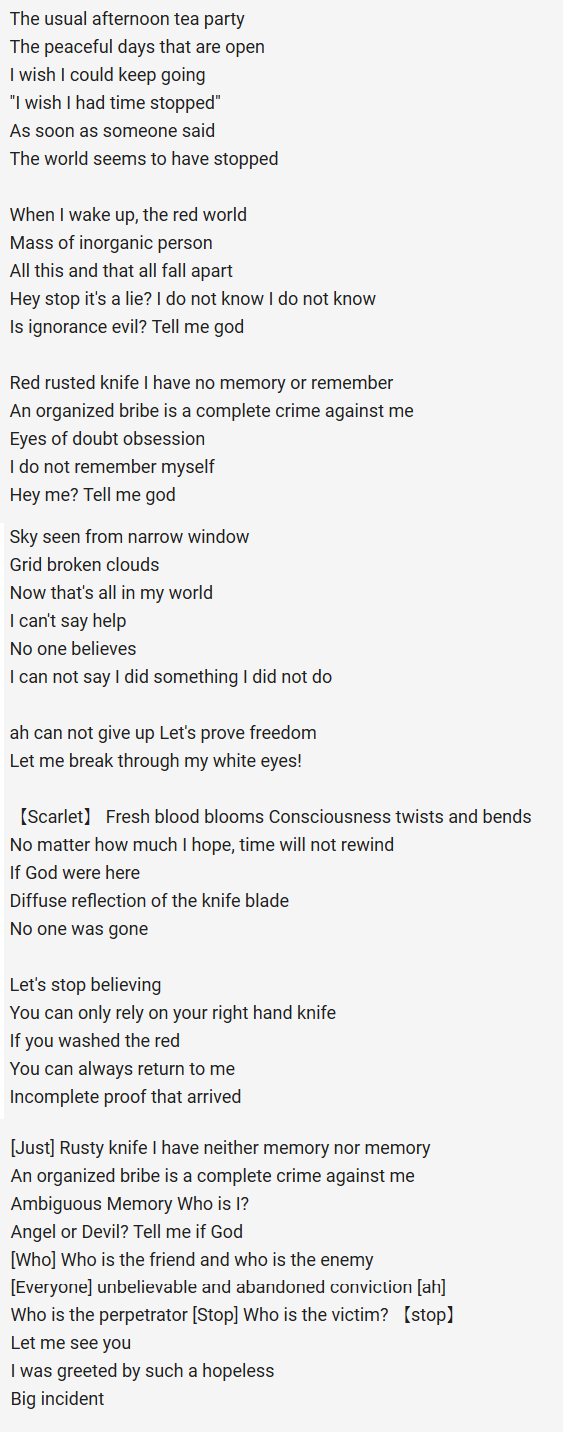 >>83199 Кстати, в офф.альбомах разве не аранжировки? >>83200 А текст как-то неплохо бы с небольшими изменениям пошёл Стране Иллюзий или в частности бывшему аду, если я не напутал ничего с огрызками его лора.