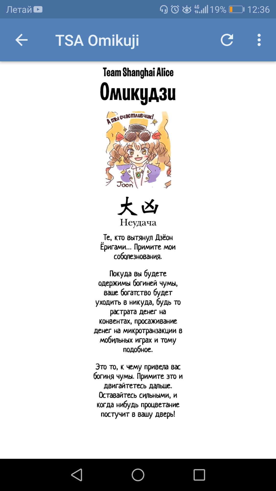 Вот чё нарыл с предидущих Тохо-сборищ: 1 пикча - какая у Маленькой Дьяволицы ляжка. Мясистая. 2 и 3 пикчи - Это называется "Кавайная Итася". Состоит из двух слов: Итай и машина. Увидеть бы это чудо на Невском проспекте и реакцию ментов. Да уж. 4 пикча - Это чувак из Тохо-видюшек с мешком и иероглифом. Видимо, он олицетворяет анонимуса в Генсокё.