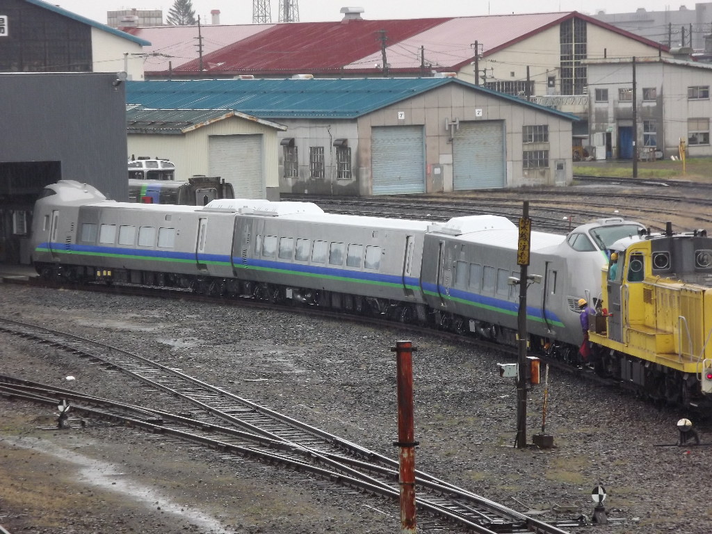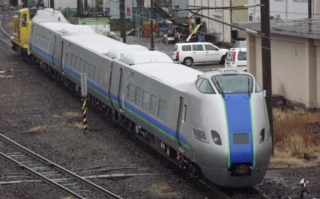 Новейший японский дизель-поезд KiHa 285 series с функцией наклона кузова в кривых, выкатывают с завода Кавасаки, для транспортировки на Хоккайдо. http://www.youtube.com/watch?v=3boaPZXIwvY
