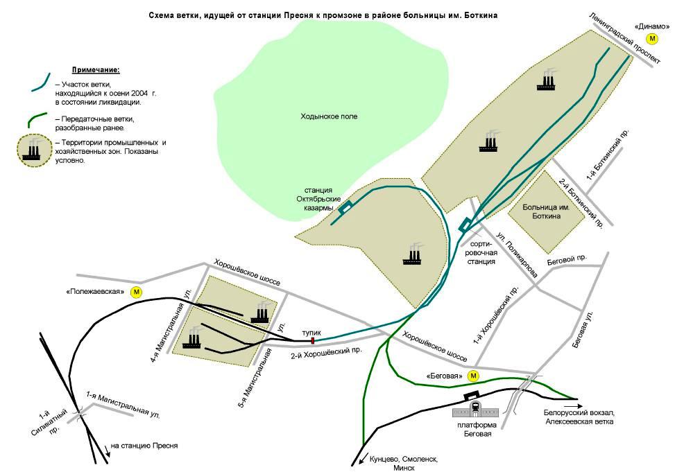 Аноны, есть ли тут москвичи из околохорошевских мест? Была ветка от станции Пресня до Октябрьских казарм и заводов в районе улицы Поликарпова. Так вот, нашел карту, где нарисована ветка тоже до казарм, но уже от Беговой или Белорусского. И тут же вспомнил вроде как остатки переезда через Хорошевское шоссе и полускрытые землей рельсы там же. Кто-нибудь помнит?