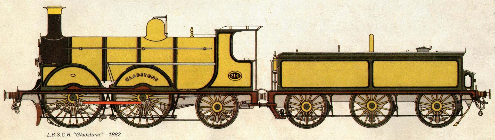 Пытаюсь разобраться как хотя бы гуглить инфу по Гладстону. Этот королевский говнюк гуглится, в том числе, как LBSCR No 214 Gladstone, где LBSCR stands for London Brighton and South Coast Railway. И у этой компании были ещё локомотивы, с внутренним расположением цилиндров. Про них в вики пишут "Cylinders: Two, inside". Я всё ещё не понимаю как так. Начинаю подозревать, что у них были не колёсные пары, а отдельные колёса. Снаружи общее коромысло, а внутри - неонка паровая машина и шатуны. Правдоподобно?