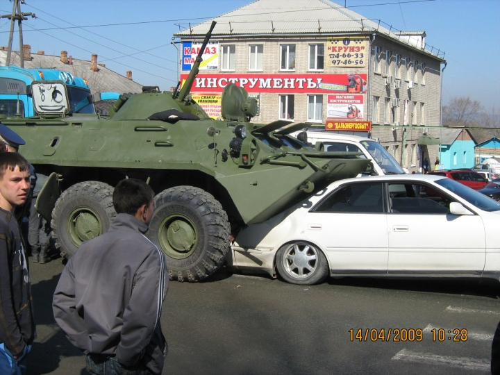 Это не тяжёлая техника, по-моему, около 12 тонн, не сильно больше трактора. И гусеницы есть уширенные, вполне могут нормально ездить по асфальту. А хуйню творить не буду - зачем, и так все боятся... по крайней мере должны бояться... по крайней мере я так хочу! БРДМ тоже неплохие. Видок приличный, и колёса, опять-же таки.