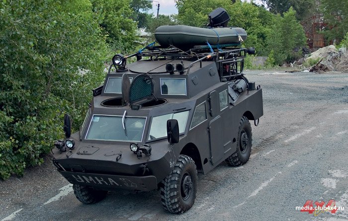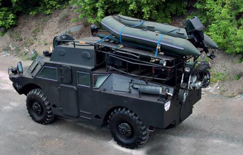 Похоже на Газ-71. ДВД, кожаный салон, все дела. Риальне потсоны заценят прибор ночного видения и ИК прожектор типа "Луна". Только требуют регистрации на форуме, чтобы посмотреть картинки.