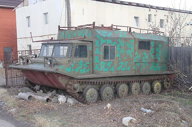 Кроме того, старые БТР-60 (колёсный, можно хоть номера ставить и по городу ездить)(правда, это жуткое уёбище весом 12 тонн с двумя движками по 90 л.с., из которых один постоянно не работает), БТР-50 (редкость, гусеницы, брезентовый верх), МТЛБ (как на оп-пикче, тот же БТР-50, но с броневерхом, очень широко распространён), Газ-71 (плавающий тягач) продают лесничим, охотникам, егерям - это совершенно охуенные вездеходы (плавающие снегоболотоходы :))) , исключительно надёжные и безотказные (кроме БТР-60, да и 70 - говно по всем статьям, абсолютно).
