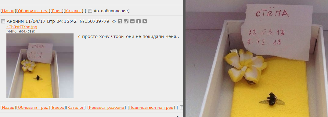 >>82713 > Почему бы тред не схоронить и не законсервировать как есть? И поднять еще на самый верх в закреп. История двачей, все таки, нельзя такое проебывать. Считай реликт. Согласен