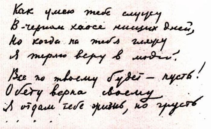 Мы идем в тишине По убитой весне По разбитым домам По седым головам По зеленой земле Почерневшей траве По упавшим телам По великим делам По разбитым очкам Комсомольским значкам По кровавым словам По голодным годам Мы идем в тишине По убитой весне По распятым во сне И забытым совсем