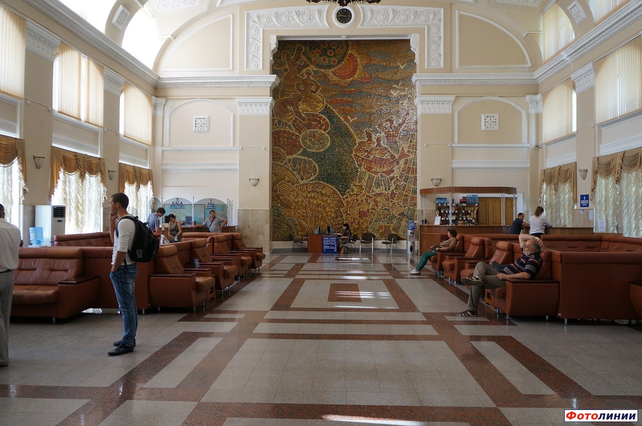 Внутри вокзала касса дальнего следования работает из железнодорожного. Вроде ещё зал ожидания есть, но не уверен, что он открыт.