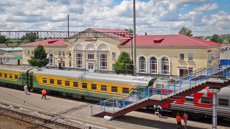 А вот теплый ламповый вокзал г.Валуйки Белгородской области . Здание вокзала построено в начале 20го века и несколько раз реставрировалось , поэтому имеет первоначальный вид и по сей день . Перед вокзалом большая , просторная площадь , есть несколько лавочек. Рядом рынок . Фото 2013г.
