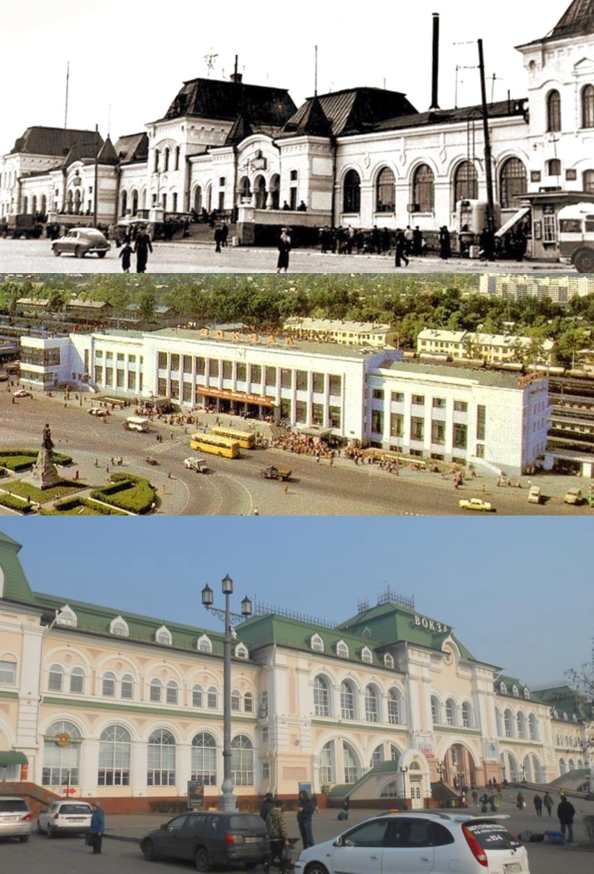 Есть ли случаи устранения этого позора? Есть, но только один. Это Хабаровск. Не совсем идеально, вокзал восстановили не совсем в старом виде, но всё-таки в том же стиле и более-менее достойно.