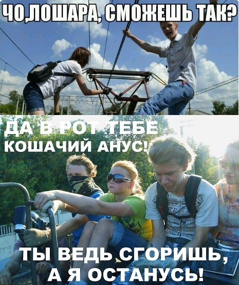 >>53455 >В этом году какой-то обвал дебилов-зацеперов. Согласен. Задолбали уже жариться, такими темпами из-за них начнут гонять нормальных зацеперов. Более того, шататели даже будут страдать наверно в меньшей степени, ведь они лезут в основном не с целью доехать на конкретном поезде до конкретной станции, а тупо повыёбываться и в случае чего быстро убегут, а не станут пытаться остаться на поезде