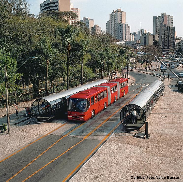 Система скоростных городских автобусов BRT впервые появилась в бразильском городе Куритиба, и уже доказав свою сверхуспешность стала широко распространяться по всему миру.