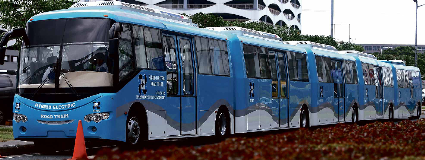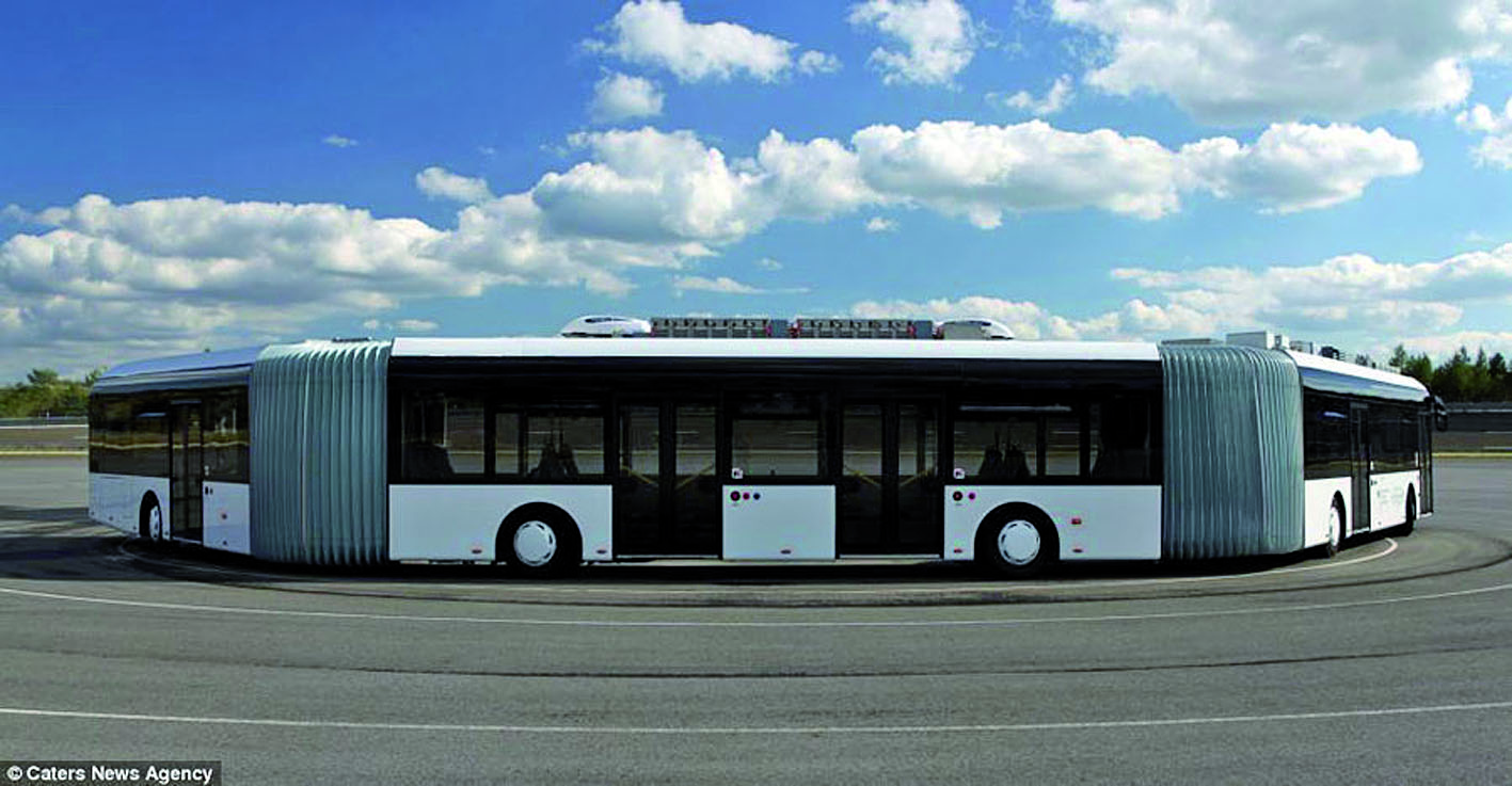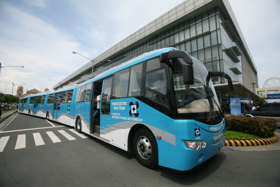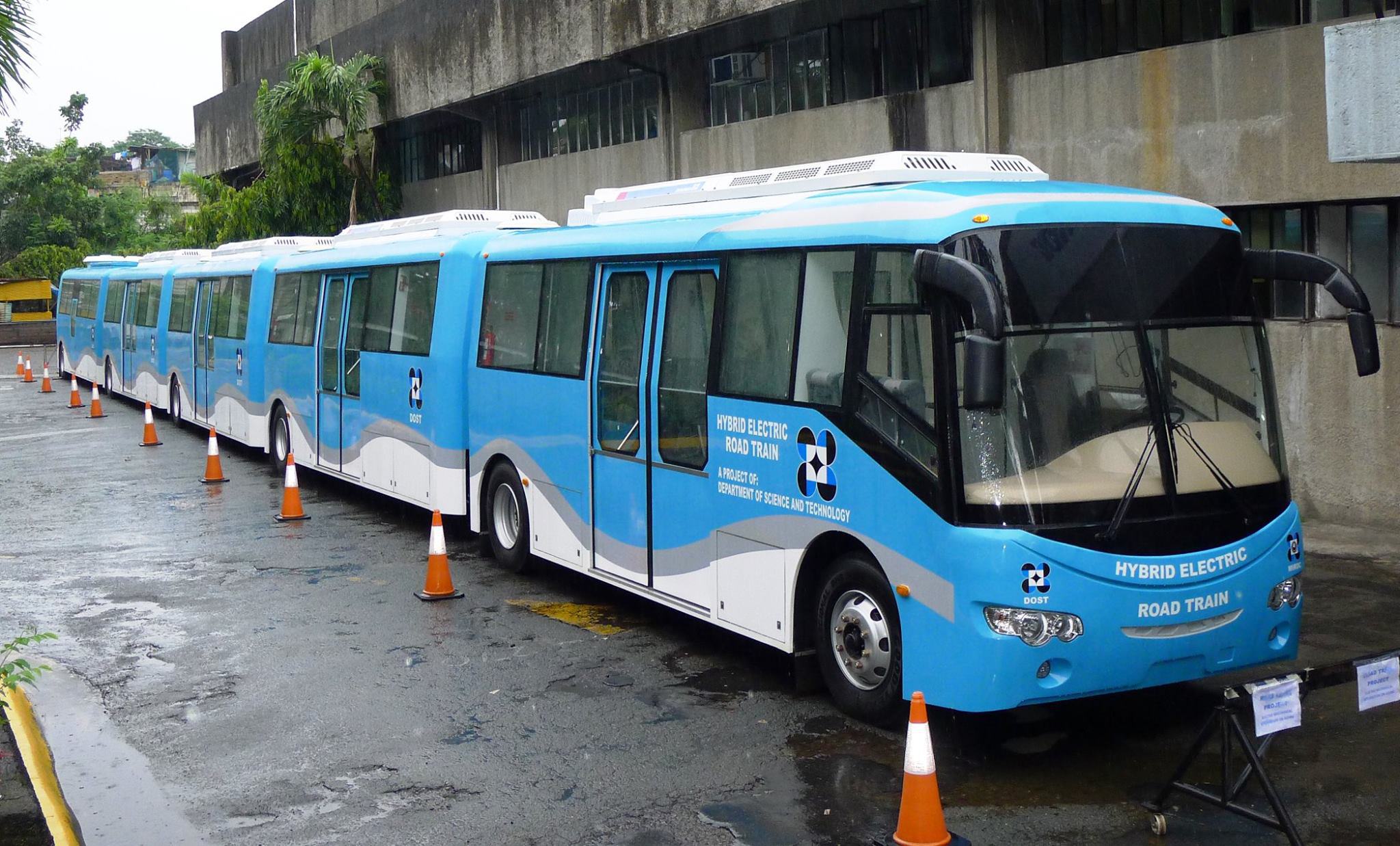 На Филиппинах разработали новый автобус - пятисекционный дорожный поезд, длиной 40 м, двери по обеим сторонам, привод автобуса электрический, энергия от дизельгенератора расположенного в хвостовой секции, возможен ход на аккумуляторах. Набиться в него может до полутысячи филиппинцев. Что примечательно - в отличие от последних транспортных разработок духовной сверхдержавы, у филиппинского транспортного средства не только присутствуют колёса (!) но оно ещё и ездит по улицам Манилы, и даже возит (!) пассажиров. http://www.youtube.com/watch?v=TMVP7Cme4DA