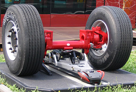 Каждый из них состоял из двух передних частей автобуса Kenworth-Pacific T-216 school bus , двух моторов и КПП и двух ведущих мостов. Зачем такие сложности? Так разворачиваться было негде, так что две кабины в разных концах машины и два силовых агрегата служили для поездок в разные стороны. Вот и все.
