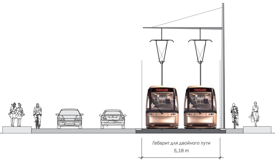 Вот казалось бы - зачем европейцы строят линии транслора когда у них есть такие замечательные гибридные "пазики" как Van Hool ExquiCity24 - выдели "выделенку" и гоняй! Но фишка в том что "европазик" при длине 23,82 м имеет минимальный радиус поворота в 12,15 м, а шестимодульный вагон транслора, длиной 46 м развернётся на пятаке радиусом в 10,5 м. При этом "выделенка" для двухпутного участка транслора занимает в ширину всего 5,18 м, понятно что для встречного движения автобусов шириной 2550 мм, такой дороги будет явно недостаточно. Места транслор требует меньше, а перевозит больше (при этом экологически чище даже гибридных дизель-электрических автобусов).
