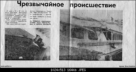 АВАРИЯ НА ИРКУТСКОМ ВОДОХРАНИЛИЩЕ 27 июля 1989 года теплоход «Ракета-87» мощностью 662 кВт. с неисправной РЛС, под управлением сменного капитана Веялко Г.Н. следовал по Иркутскому водохранилищу по напрвлению от плотины рейсом Иркутск – Листвянка с 60 пассажирами на борту. Состояние погоды: ветер слабый, туман, видимость ограничена (менее 1 км). Береговые и плавучие знаки навигационного оборудования судового хода находились на штатных местах и действовали исправно. Около 10 час. 20 мин. теплоход находился в районе пади Змеиная (25 км). Главный двигатель имел частоту вращения 700 об/мин. (малый ход). В рулевой рубке находились: вахтенный рулевой-моторист Анциферов О.В. и рулевой-моторист Фролов А. Б. для обеспечения постоянного визуального наблюдения. В это время в районе 12 км. Рейсом Листвянка – Иркутск (в сторону плотины) следовал теплоход «Восход-8» мощностью 662 кВт, необорудованный РЛС. На борту находилось 23 пассажира. Судном управлял капитан Стафеев П. Г., вахтенный рулевой-моторист Мельников И. В. Был напрвлен в машинное отделение для проверки работы механизмов. Главный двигатель имел частоту вращения 750 об/мин (малый ход). В это время в данном районе находились теплоходы: «Восход-59», стоящий у левого берега в районе мыса Бык (14 км) в ожидании улучшения видимости, «Заря-208», осуществляющая движение в направлении города Иркутск вдоль правого берега на 20 км (видимость 1 – 1,5 км) с работающим РЛС. Между теплоходами «Восход-8» и «Заря-208» состоялся радиообмен по УКВ-связи, где было определено местонахождение судов и состояние видимости. Затем состоялся двусторонний радиообмен по УКВ-связи между судами «Заря-208» и «Ракета-87», который слышал капитан теплохода «Восход-8» Старев П. Г. Капитаном теплохода «Ракета-87» было сообщено, что он следует вдоль левого берега на Листвянку, проходит падь Змеиную. Примерно на 14 км, обогнав по правому борту т/х «Калинин», по словам капитана Стафеева, видимость улучшилась, на теплоходе «Восход-8» обороты главного двигателя были добавлены до 1000 об/мин, и судно продолжило движение в режиме глиссирования курсом 3250 (примерно соответствующим оси судового хода). В это время состоялась по вызову теплохода «Восход-8» двусторонняя радиосвязь по УКВ с идущим навстречу т/х «Ракета-87», при которой с теплохода «Ракета-87» последовал ответ, что следует вдоль левого берега, прошел падь Змеиную. Как считает капитан Стафеев П. Г. (по визуальному наблюдению), дальнейшее движение осуществлялось указанным курсом на расстоянии 300 м от левого берега. В дальнейшем согласование о порядке и условиях расхождения между теплоходами «Ракета-87» и «Восход-8» не производилось. В 10 час. 40 мин. капитан т/х «Восход-8» Стафеев П. Г. Внезапно впереди по курсу увидел на расстоянии около 80 м идущий навстречу теплоход «Ракета-87». По утверждению капитана Стафеева П. Г., обороты были убавлены до упора (минимально устойчивые обороты), рукоятка управления реверсом переведена в положение «стоп» и с выдержкой 1 – 2 сек на задний ход с одновременной перекладкой руля вправо. По утверждению вахтенного начальника теплохода «Ракета-87» Веялко Г. Н., при движении самым малым ходом на расстоянии 150 – 200 м (определено по РЛС) от левого берега неожиданно впереди по курсу, на расстоянии 70 – 100 метров был обнаружен встречный теплоход «Восход-8», идущий на крыльях с большой скоростью, рул
