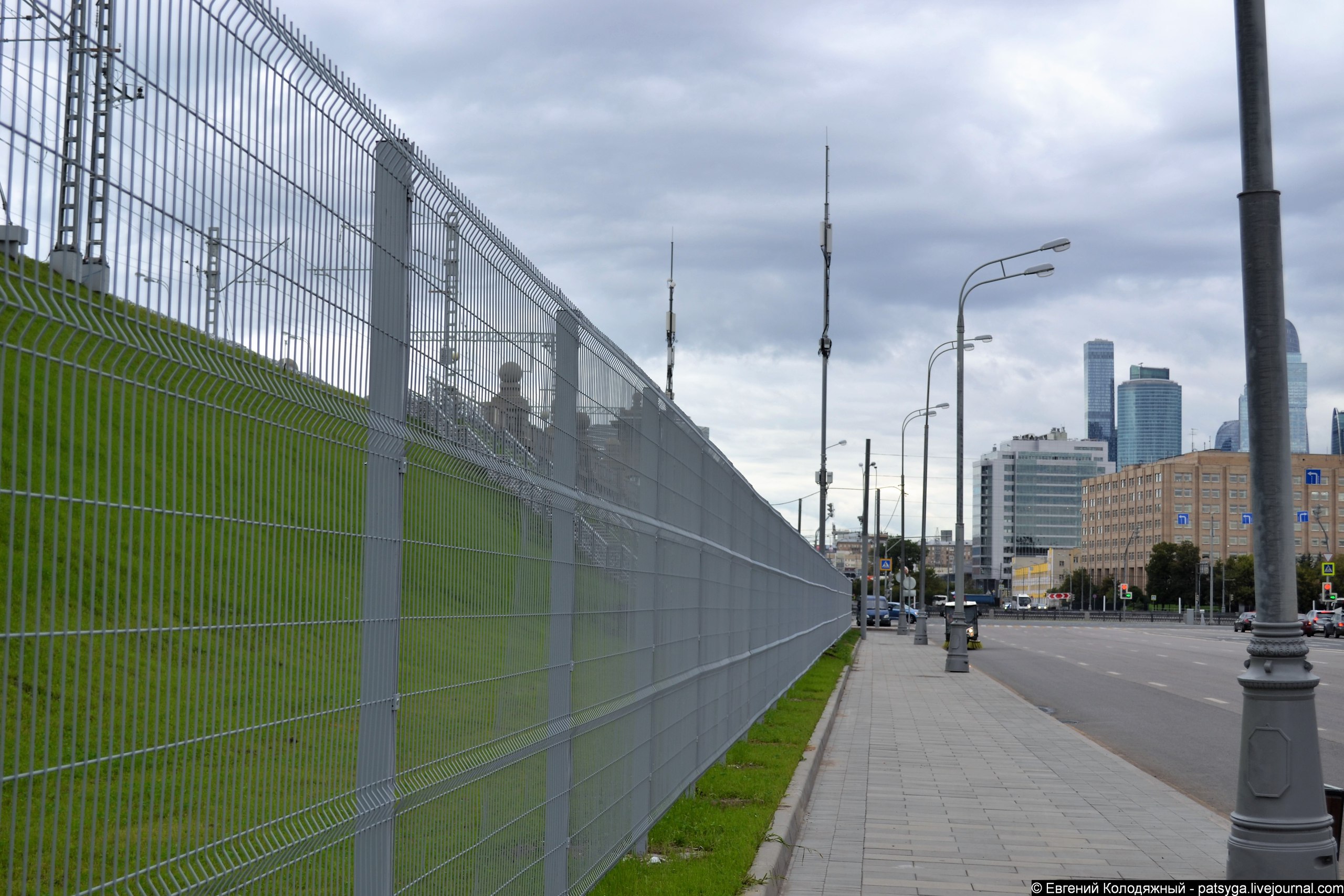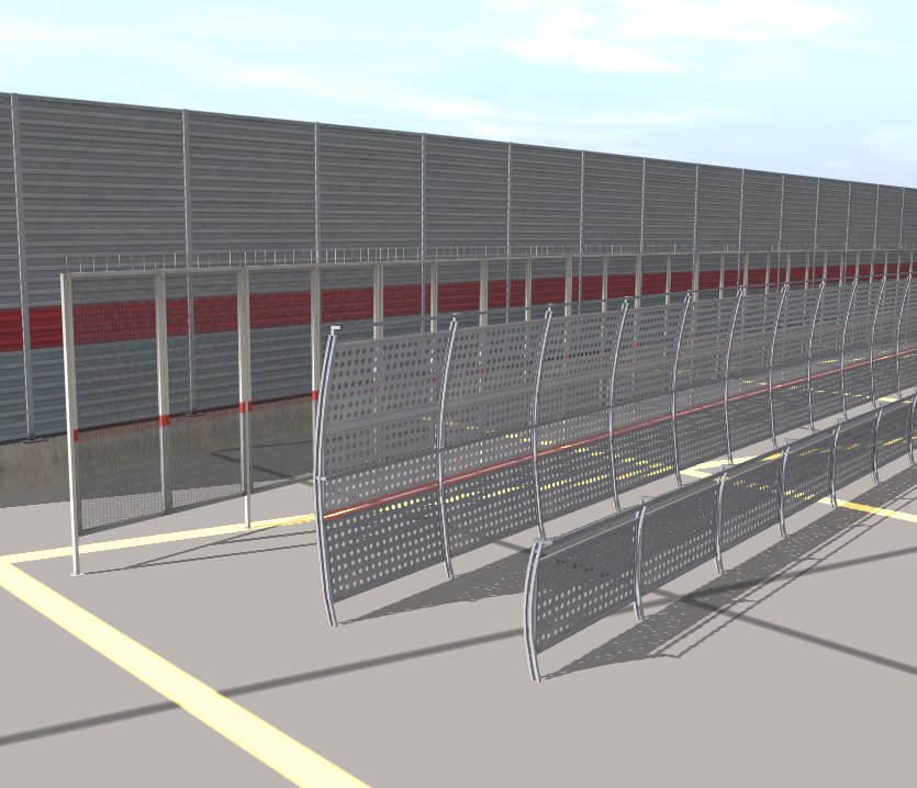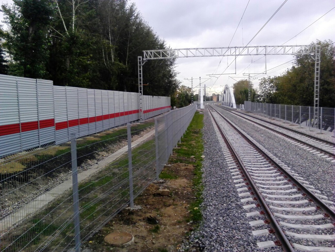 Справа налево - забор станции без турникетов, перелезабельный забор станции с турникетами, труднопреодолимый нанозобор с острыми шипами (ставят исключительно на турникетных станциях + иногда на 300 метров вдоль путей вместо обычных) и высокий шумопоглощающий забор устанавливаемый вдоль путей