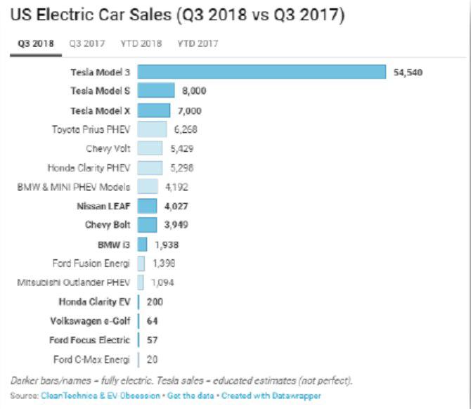 В 4-м квартале 2018-го года продажи автомобилей выросли до 90,7 тыс. единиц, что на 8% больше, чем в прошлом квартале (оба квартала с рекордными показателями), включая 63 150 единиц Model 3 (13% рост по сравнению с 3-м кварталом 2018-го года), 13 500 Model S и 14 050 Model X.
