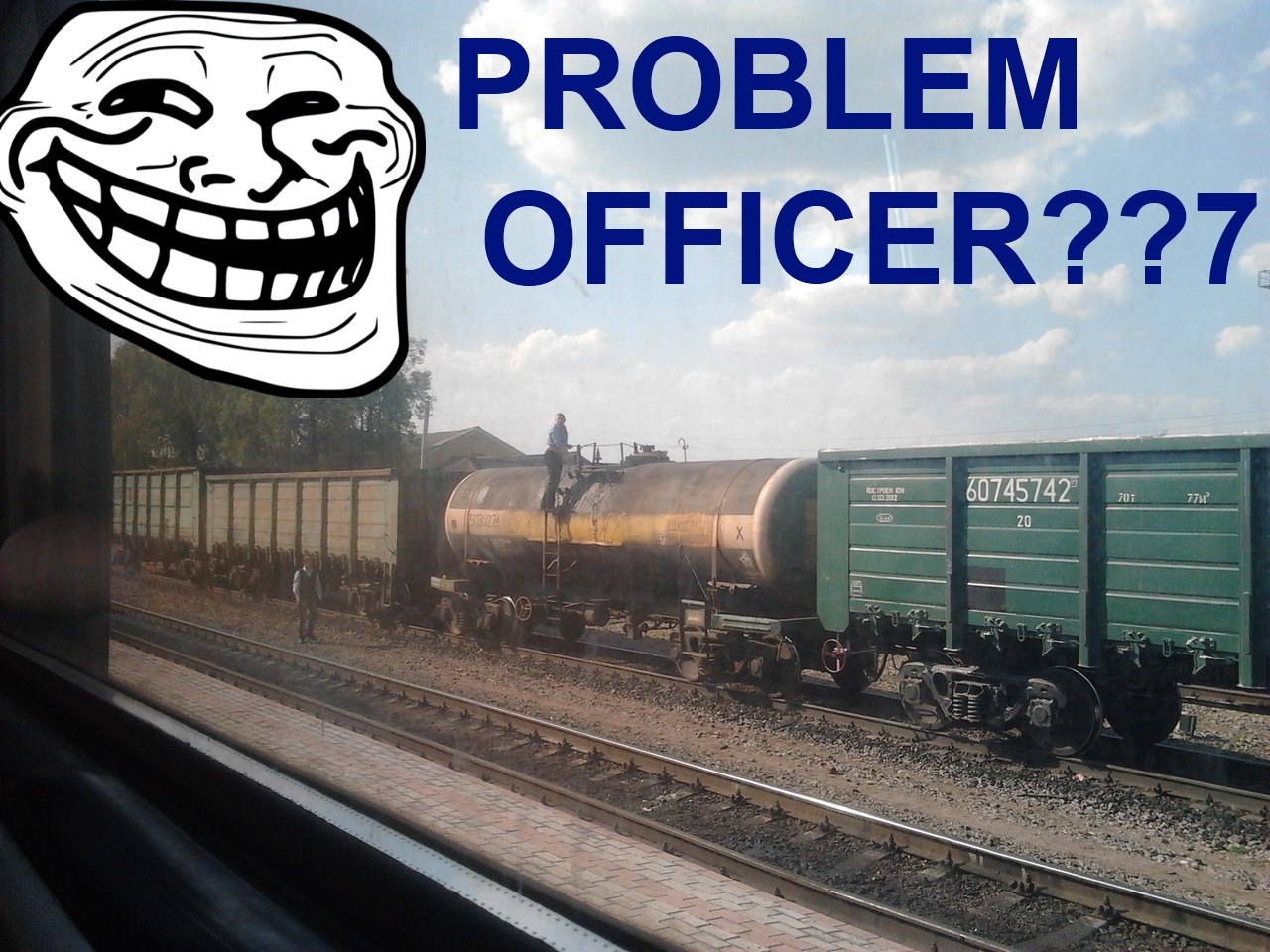 ВНЕЗАПНО краем глаза замечаю что на платформе снуют туда-сюда пара ментов и ещё одна жилетка (походу быдлан) (платформа кстати низкая) Я понимаю что эвакуироваться уже поздновато и изо всех сил вжимаюсь в крышу, стараясь не спалиться. Один мент залезает на полувагон: > "А! Вот он где!" Уже становится ясно что с живым грузом рашка никуда не поедет. Я быстро оцениваю обстановку и действую по принципу "Остаться на поезде любой ценой": слезаю в мв на бесплатформенную, > "Эй, ты куда, хуй?!", мгновенно прозефириваюсь (ра2, слава яйцам была старой модели с резиной, а не гармошкой), запиливаюсь в туалет и запираюсь там.