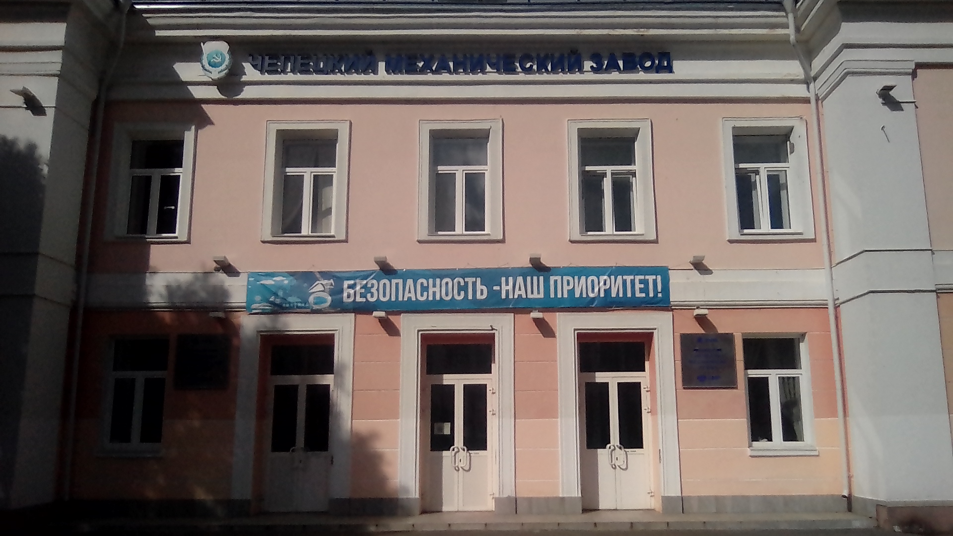 у ЧМЗ было 11 проходных и три заводоуправления. уровень допуска на них разный. работники одного цеха даже близко не знают кто работает и что происходит в соседнем цехе. и проходные у них тоже разные. пробираемся по дворам, рядом с граффити до главного заводоуправления, которое внешним видом (окнами) весьма напоминает высотки Российской академии наук.