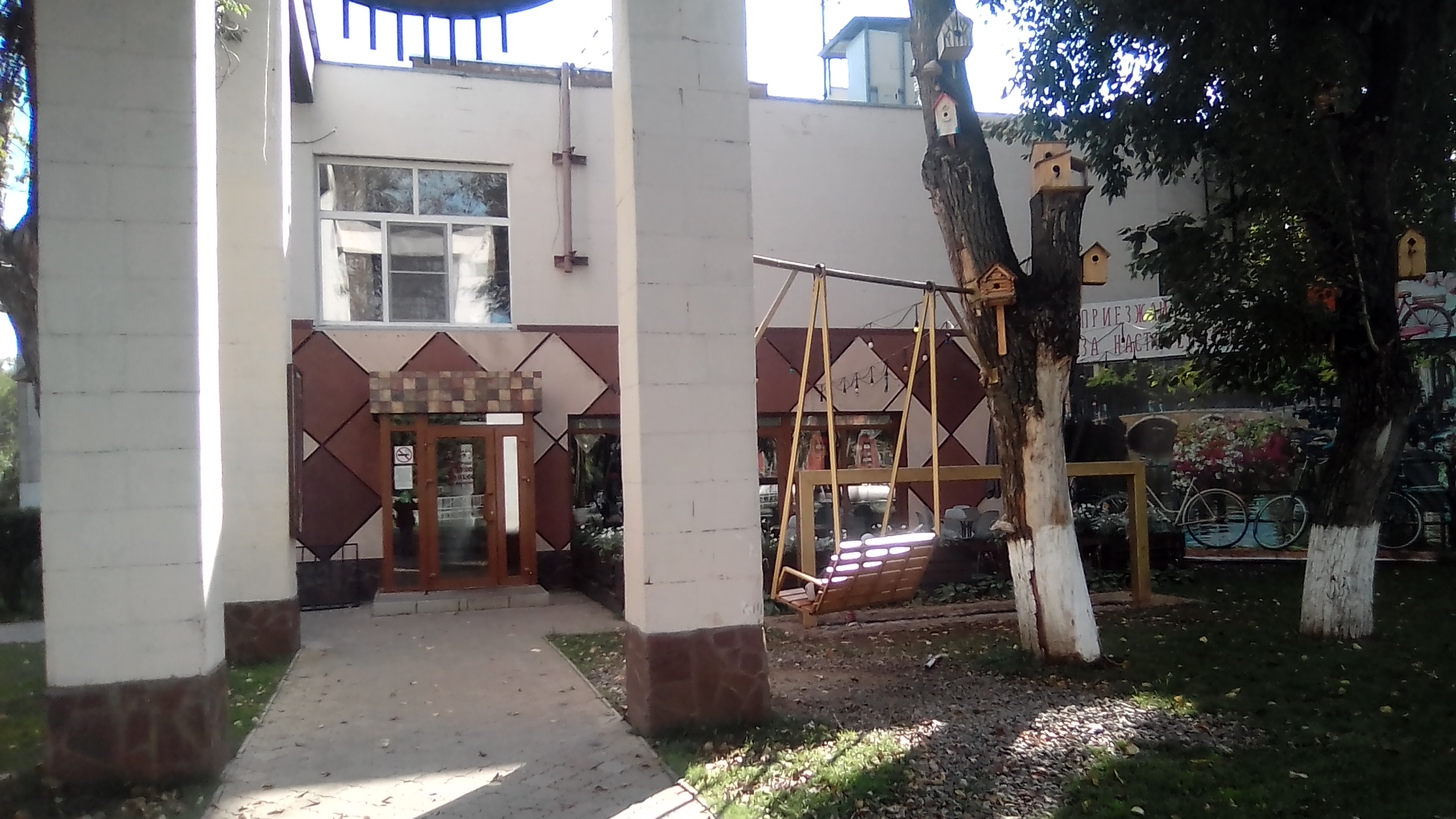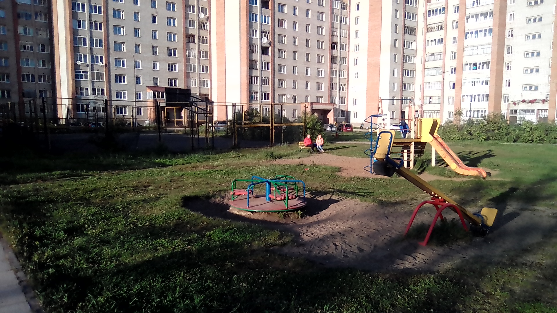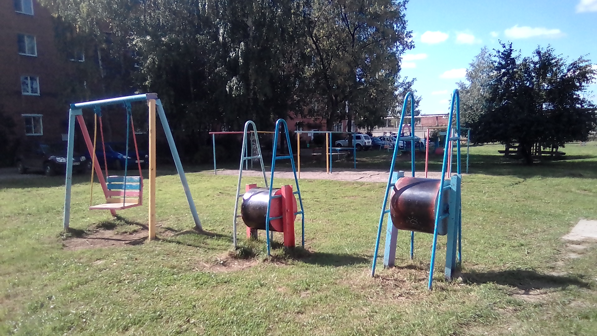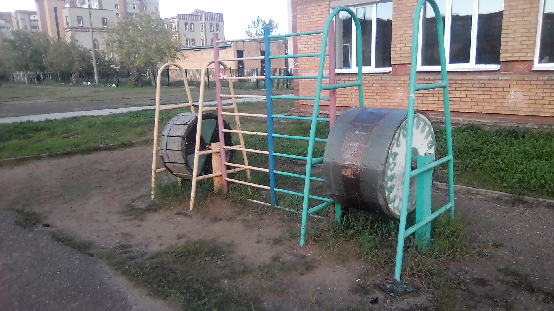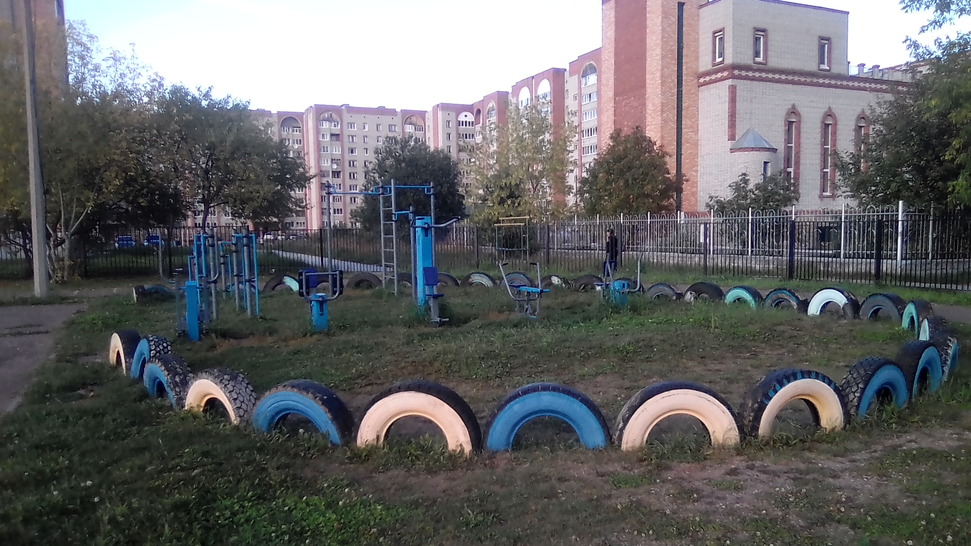 организация детской среды. 1 беговые барабаны. которые только здесь да ещё в гетто у Металлиста остались 2 шины. тренируют прыгать по гаражам и по крышам 3 турникеты по городской программе. однотипные и поставлены в половину дворов нового района, но кое-где встречаются и в центре. 4 ещё какие-то развлечения и непременно баскетбол