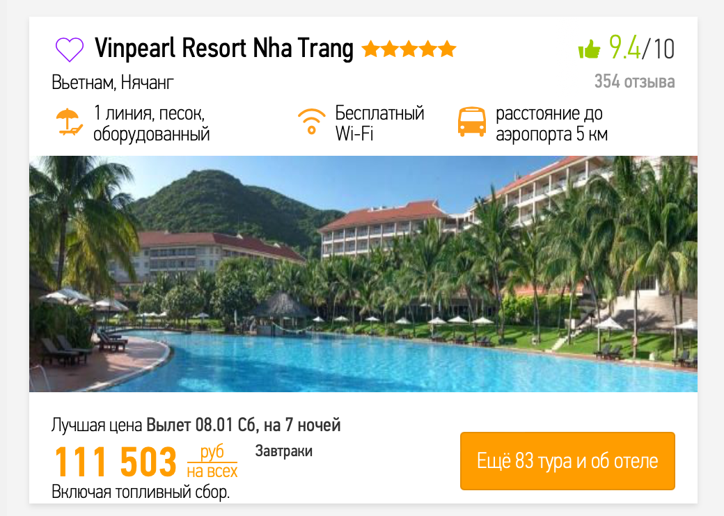 Тред не читай @ сразу отвечай Три года подряд ездили с женой и ребенком на Пхукет на Карон. Оче доставляло. Путевка из моей мухосрани в зависимости от времени года стоила от 88 до 120 к. С собой на все про все всегда хватало 1500-1700 usd. Брали всегда двушку - т.е. что-то оставалось. Последний раз ездили в начале октября 2014, успели съездить с дешевым долларом, но хуевой погодой. Из 13 дней 5 или 6 дожди и шторма, а море так вообще весь отпуск не спокойное. А в этом году печаль бида. Смотрел путевки в тот отель в который хочу на ноябрь - январь. аутевка на троих 150 плюс с нынешним курсом собой сотку надо. Ебал я это в рот все. Ещё и ремонт решили делать дома, так что все бабло уйдет туда. А поехать очень хочется, единственные 2 недели в году, когда я действительно чувствую себя счастливым. И да, из моей мухосрани дешевле и быстрее лететь пакетом, чем дикорем. 31lvl дочке летом будет 5. Меньше ли бабла надо на Вьетнам ?