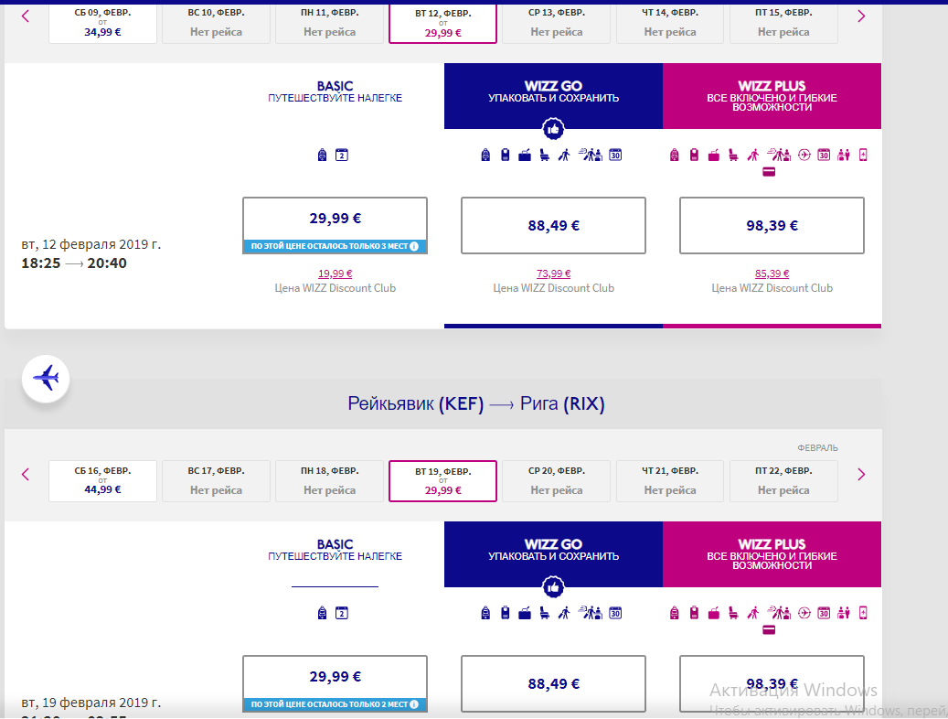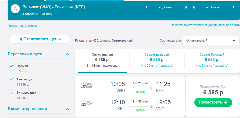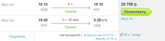 Вильнюс, Литва (VNO) – Рейкьявик, Исландия (все аэропорты) 10:05 → 11:25 по ср и вс