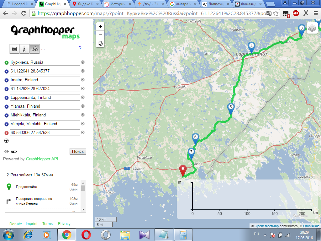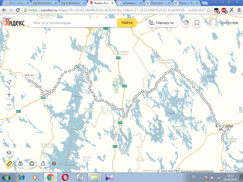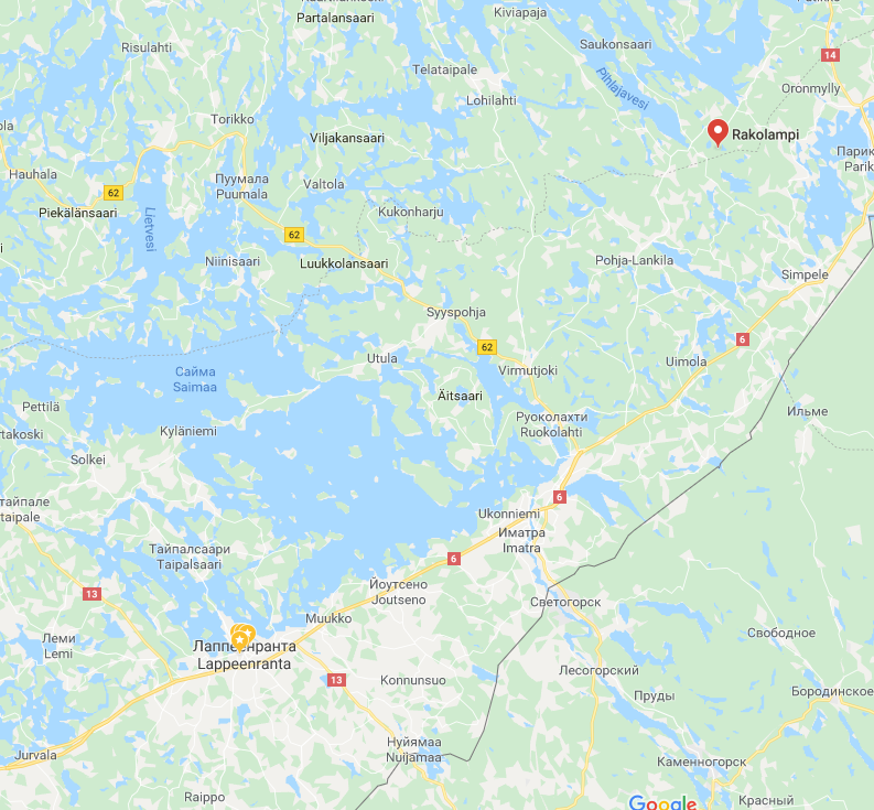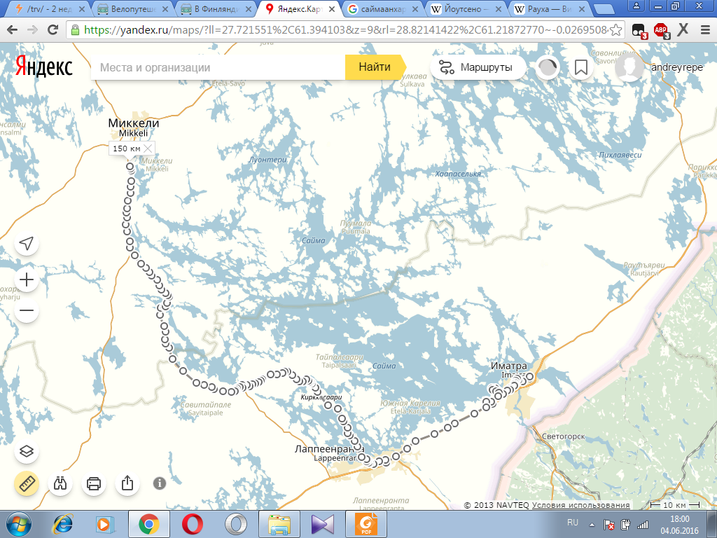 день 1 иматра - рауха -тиуруниеми- пеллисенранта- йоутсено - лапперанта- куйвакетвеле- саймаанхарью- тайпалсаари- хейккола- олккола-левянен- суппала- савийоэнтаус-хюрккяля- савитайпале-юрванен-киесиля-каурия-пункаа-ярвенпяа-кюурё-пеллосниеми-рахиккала-соккаланмяки-хюуруля-олкколаниеми. 150 км для первого дня будет достаточно. заночую в палатке у озера йоушарви. если не будет палева, половлю рыбу.